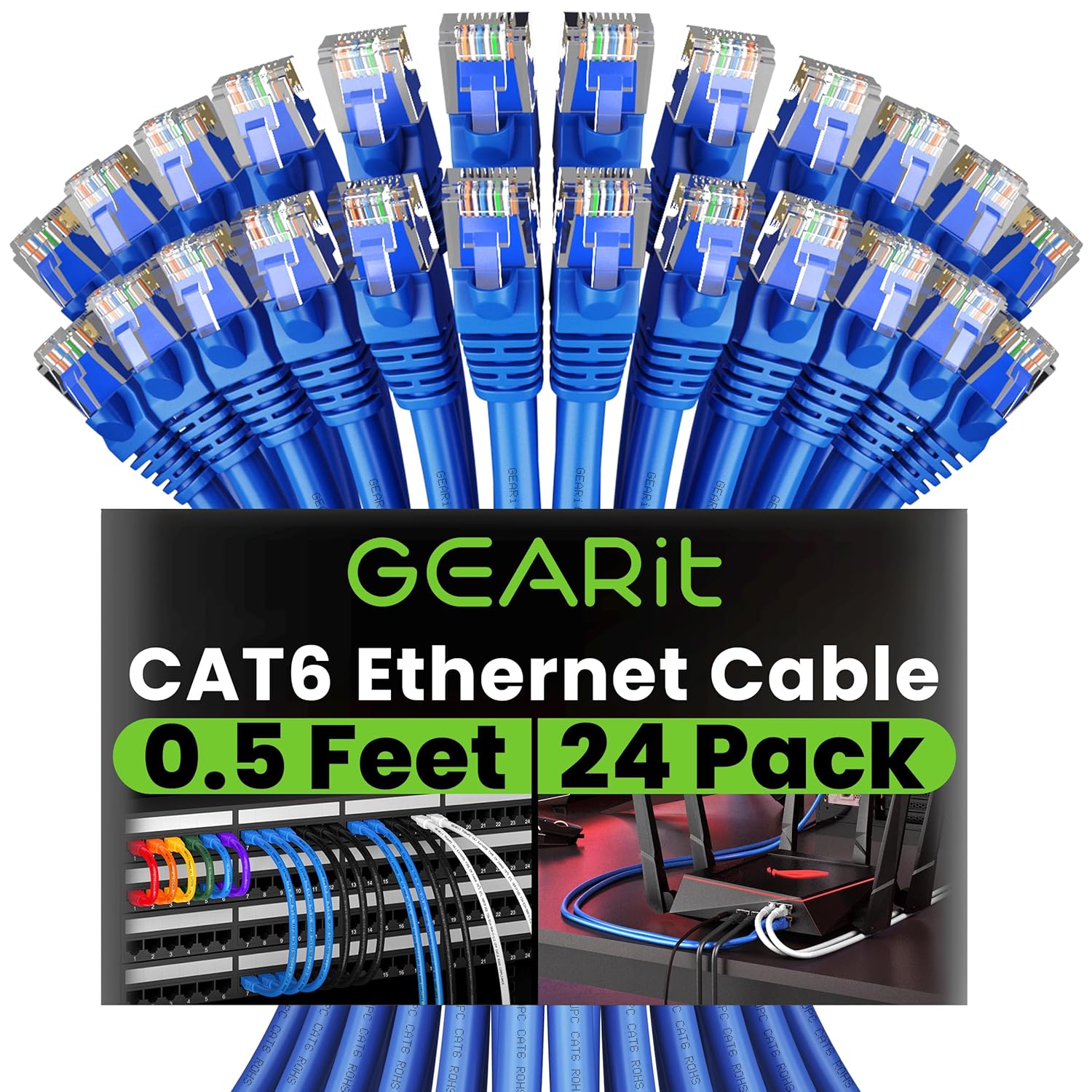 GearIT Cat 6 Ethernet Cable 0.5 ft 6-Inch (24-Pack) - Cat6 Patch Cable, Cat 6 Patch Cable, Cat6 Cable, Cat 6 Cable, Cat6 Ethernet Cable, Network Cable, Internet Cable - Blue 0.5 Foot
