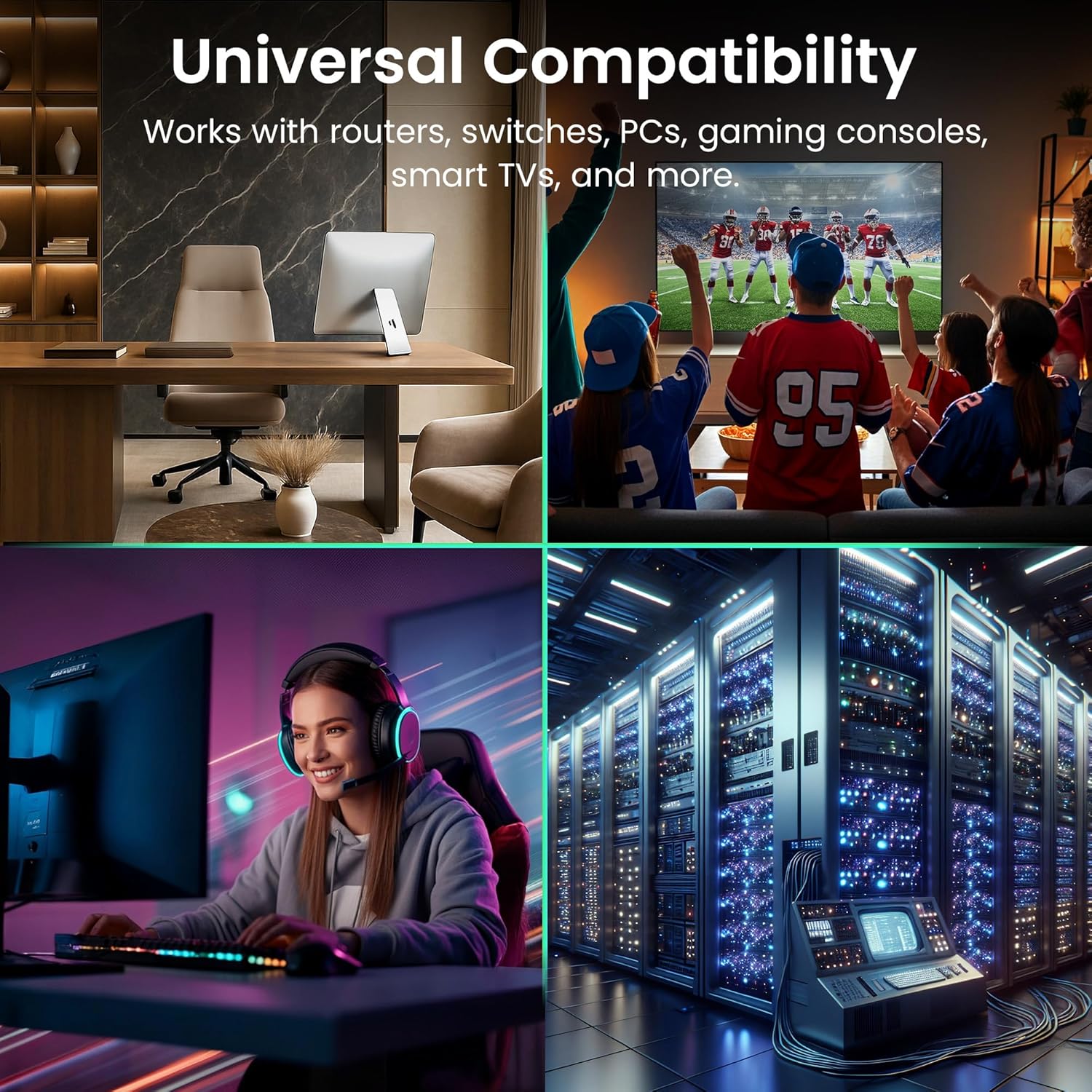 With 50-micron gold-plated RJ45 connectors, molded snagless strain-relief boots, and premium insulation, GearIT Cat6 cables deliver fast, stable data transfer while resisting corrosion and wear. Supporting speeds up to 10 Gigabit Ethernet (10GBASE-T), this bulk pack is an excellent choice for large installations, data centers, offices, and structured cabling projects.