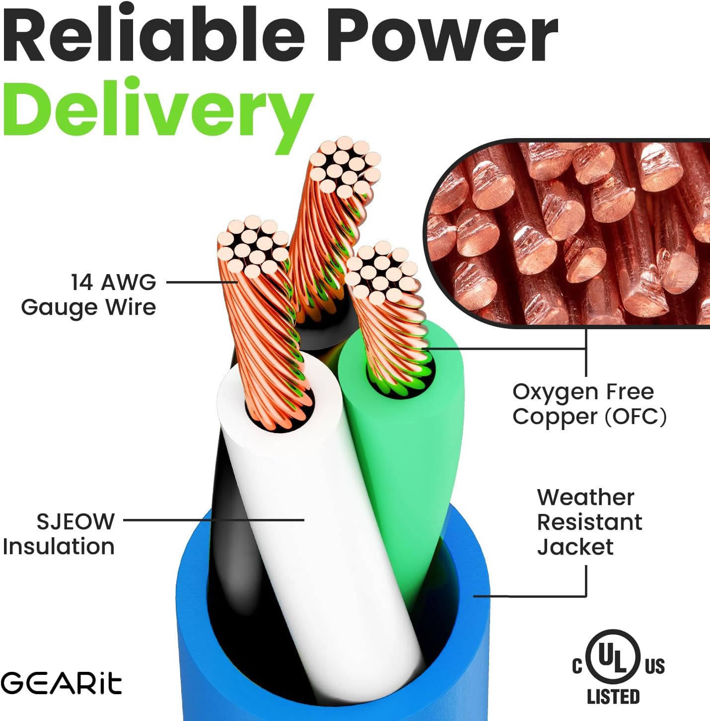 - Premium 12-Gauge Wire With 3 Conductors - Ensure clean, strong current in the long term with 12 AWG (American Wire Gauge) wire, wound and insulated for safety and consistency. GEARit makes this cord available in other gauges, too, so you can choose the right size and value for your application while keeping the same trusty, pro-grade construction.