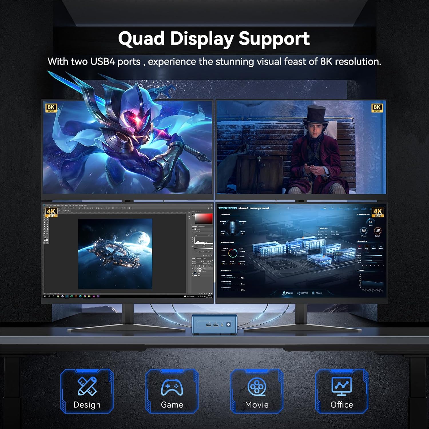 - 【Quad Display Capabilities】Support up to four simultaneous displays with 2x USB4 ports (8K@30Hz) and 2x HDMI 2.0 ports (4K@60Hz), perfect for multi-tasking and immersive setups.