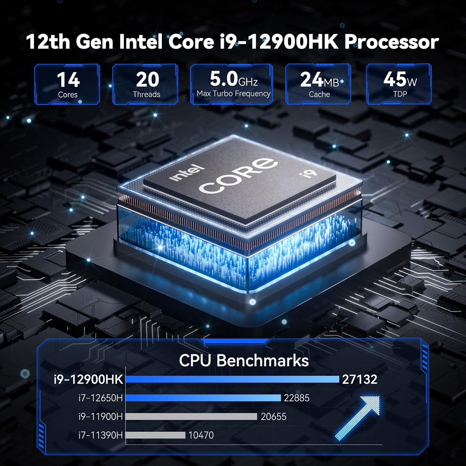 - 【12th Gen Intel Core i9 Performance】Experience elite-level performance with the Intel Core i9-12900HK processor (14 cores/20 threads, up to 5.0GHz) in an advanced 45W design that delivers up to 40% better power efficiency than standard desktop CPUs, perfect for high-end gaming, 4K video production, and demanding professional workloads.