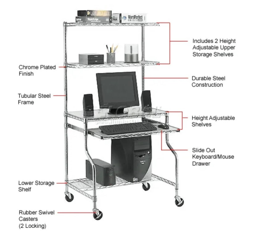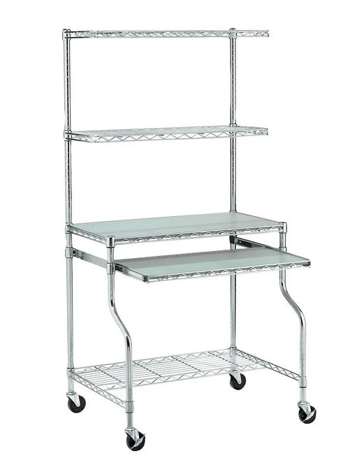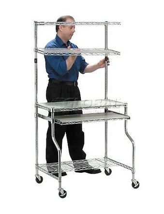 Global Industrial™ Chrome Wire Shelf Mobile Computer LAN Workstation, 31-1/2"W x 24"D x 63"H