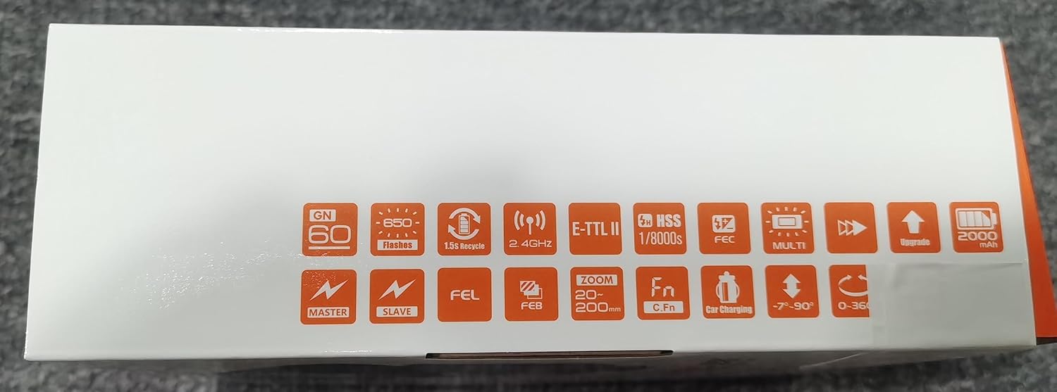 [Fully Support TTL Functions] Applies to Canon EOS camera and compatible with E-TTL II autoflash. Functions include TTL autoflash, manual flash, 1/8000s High-speed sync, flash exposure compensation, flash exposure lock, second curtain sync, modeling flash, etc