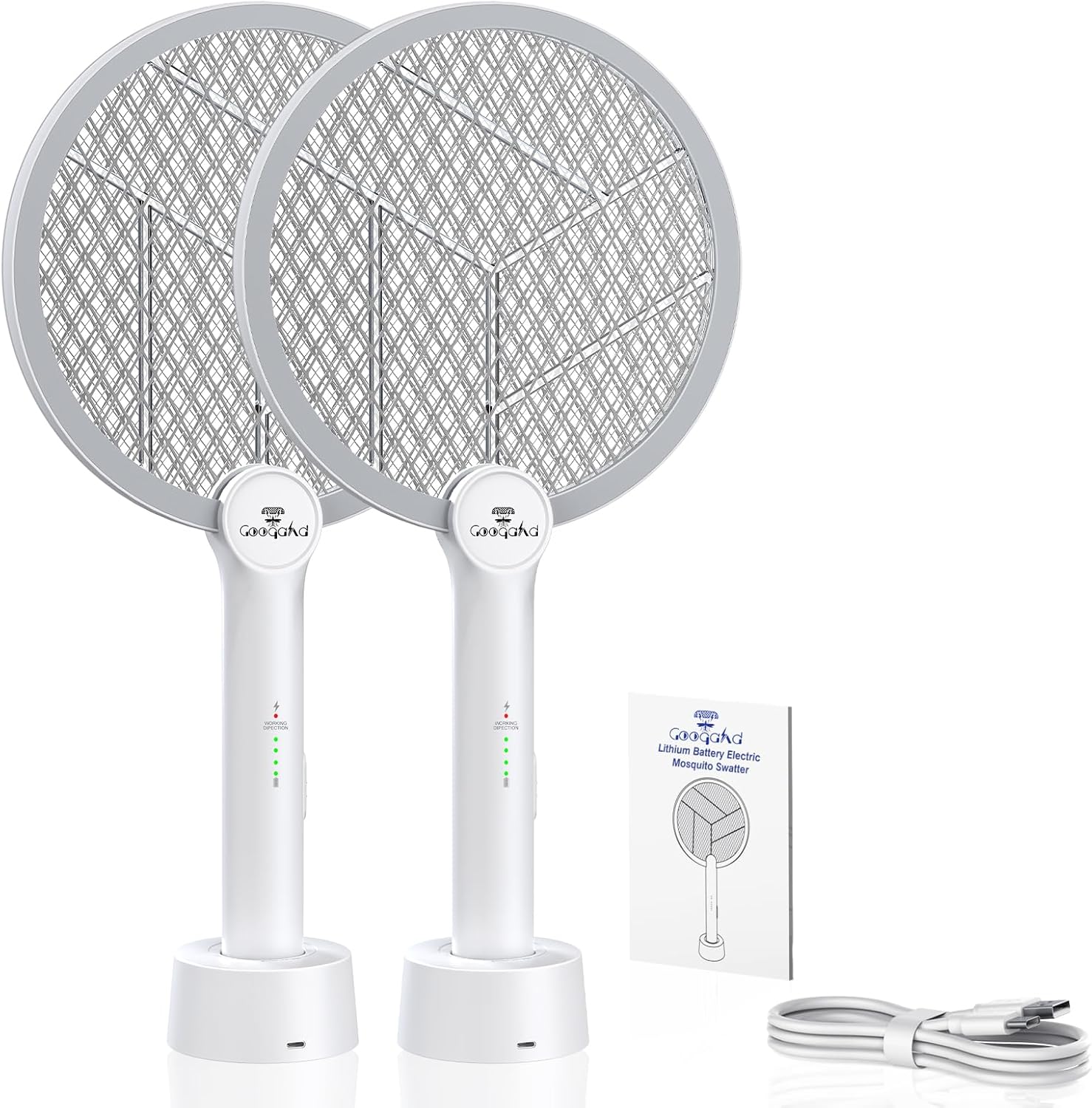 Gooqand Bug Zapper Racket, 2 in 1 Electric Fly Swatter, 4000V Fly Zapper with USB Rechargeable, Fly Swatter with 3 Layer Safety Mesh, Indoor Outdoor Fly Racket for Bedroom,Kitchen,Camping