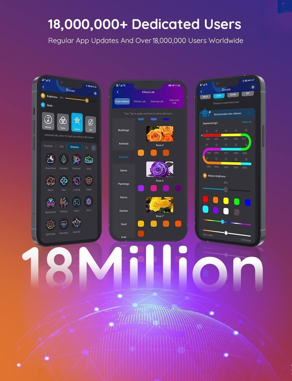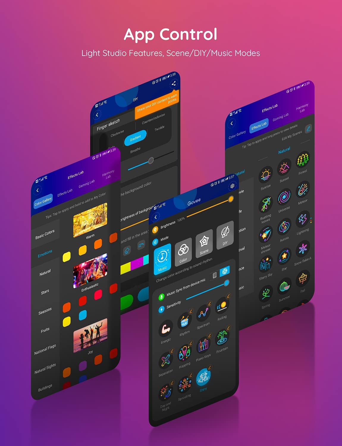 Extensive DIY Function: There are different custom lighting options to DIY. Then, you can share your color changing LED lights on APP community. As well, you will find more inspiration to bring vivid colors in the Govee Light Studio.