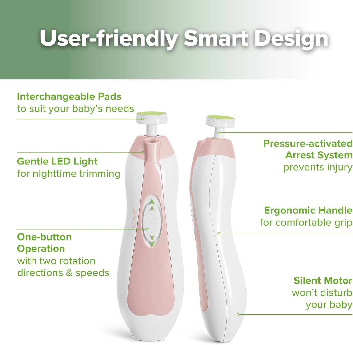 • ENHANCED VISIBILITY & QUIET OPERATION: The built-in LED light provides precise trimming day or night, while the quiet function ensures a peaceful environment for your baby.