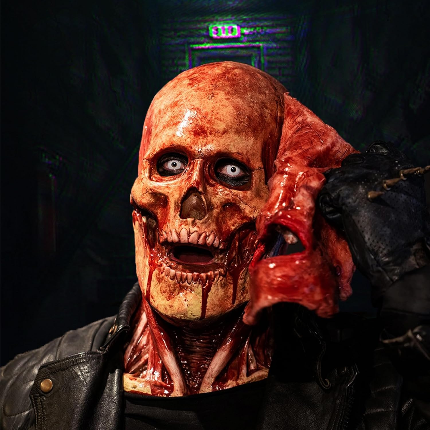 - 【Velcro Design】Bloody Horror Skull Mask, Updated product details, different from the glue models and magnet models, with Velcro link 2 layers of Halloween Jack mask, not easy to fall off.