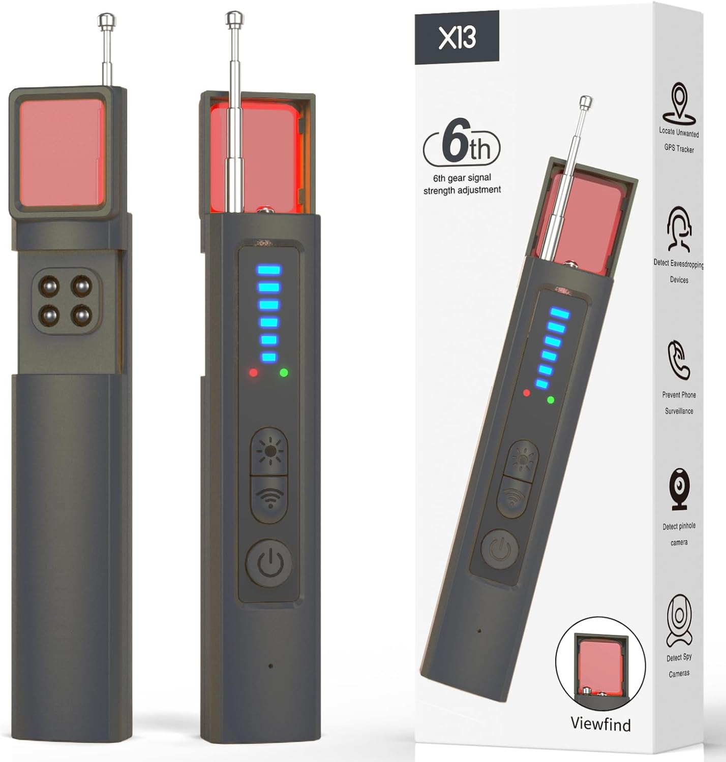 Hidden Camera & GPS Tracker Detector – Portable, Durable Anti-Spy Device for ATM Users, Shopping Malls, Business Security, Professional Signal Detection (Black)