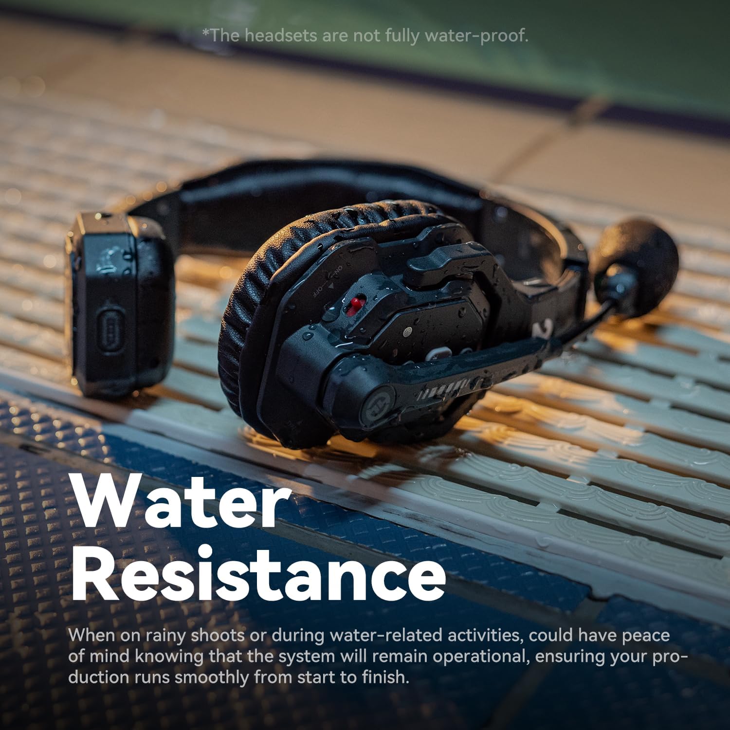 【Superior Sound & Water and Wind Resistance】Featuring a Signal-to-Noise Ratio of 70dB, Solidcom SE boasts advanced dual-mic ENC that processes sound in a way cancels out environmental noise, ensuring your voice comes through loud and clear even in noisy surroundings. And the system feature water and wind resistance. An advanced algorithm effectively reduces wind noise while internal protective paint prevents water penetration. You can have peace of mind on rainy or windy shoots.