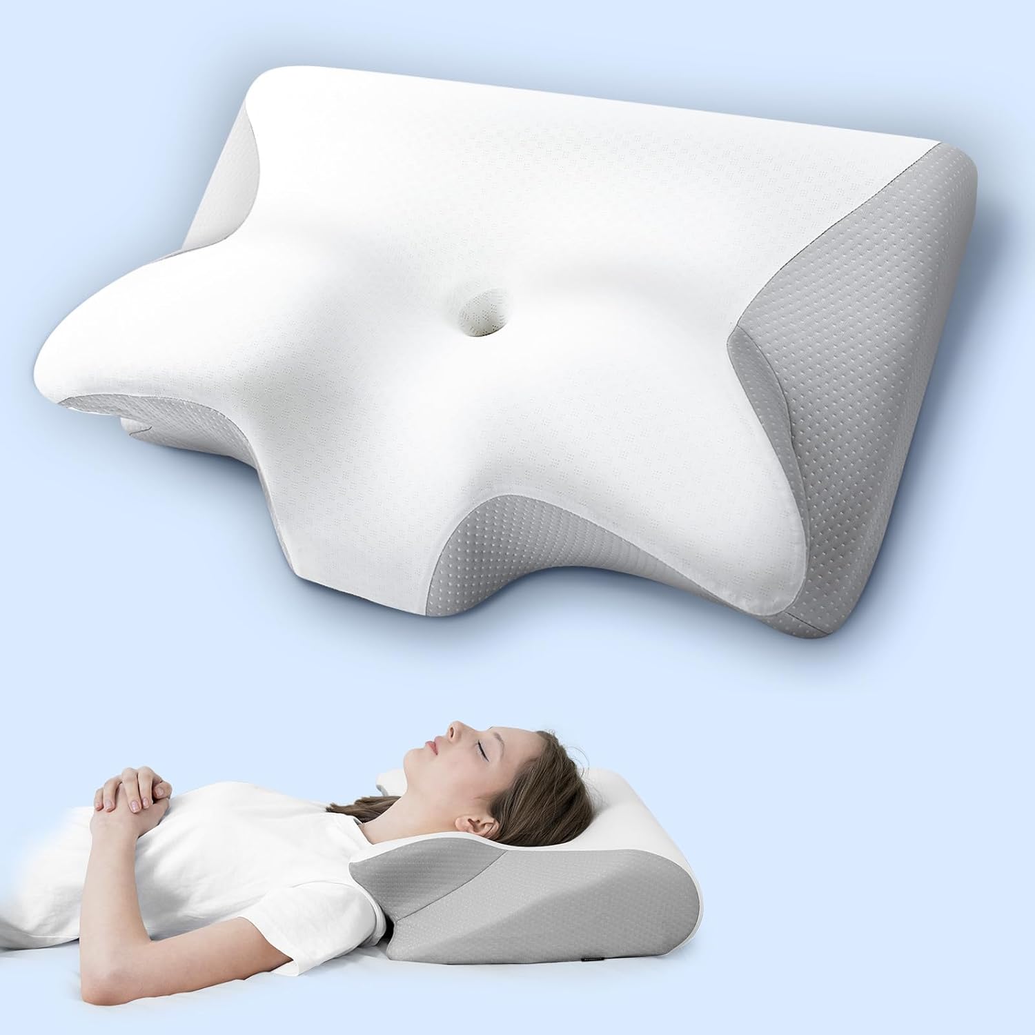 HOMCA Memory Foam Pillow, 2 in 1 Cervical Pillow for Neck Pain Relief, Ergonomic Neck Support Pillows for Side Back Stomach Sleepers with Breathable Pillowcase (Gray)PL17-B099R7CH32