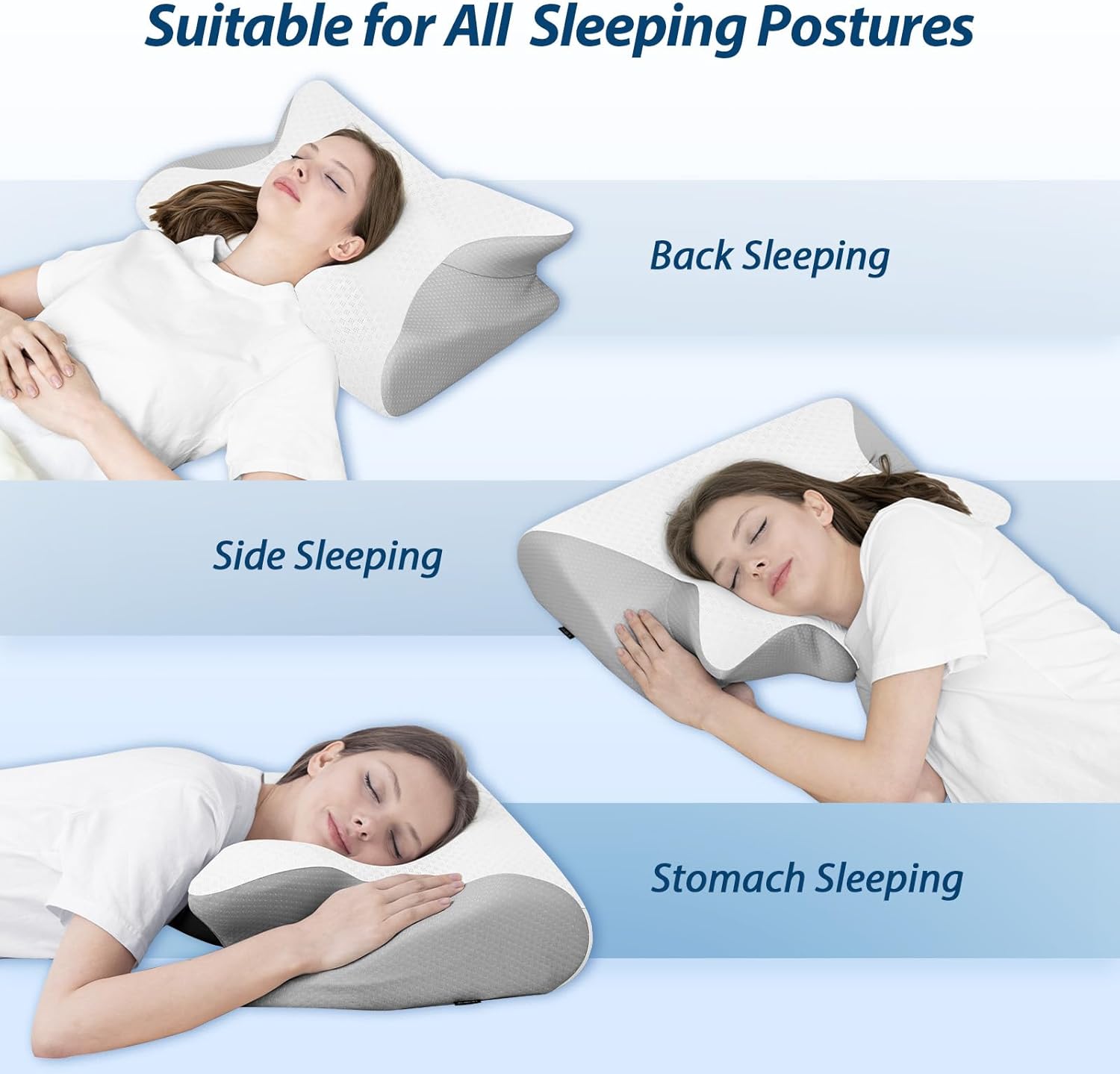 Ergonomic Pillow: The neck support pillow is made of pure memory foam. Premium firm and not too soft to provides the maximum comfort for your head, neck, shoulder and back while you sleep on your back or side