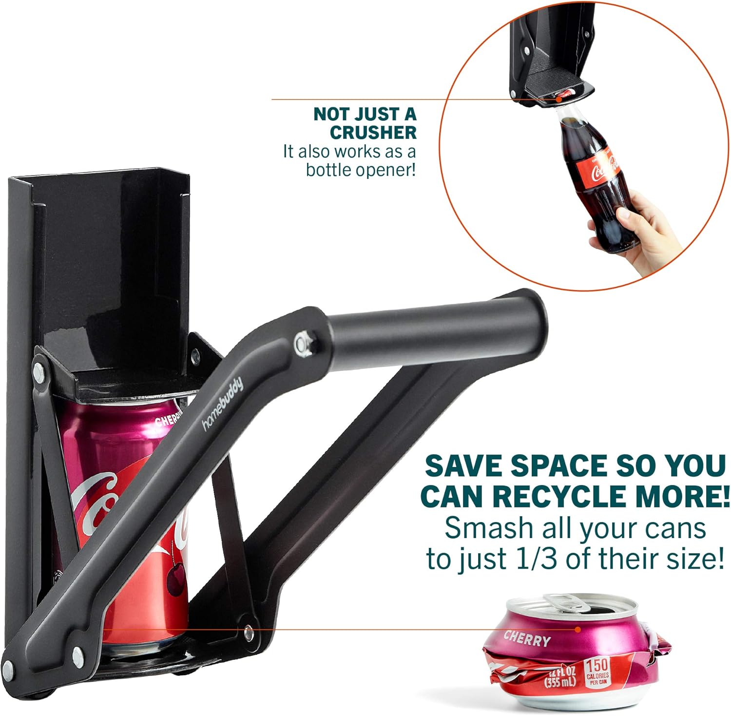 - STURDY & DURABLE - Not a flimsy aluminum can smasher, this crusher is made of thick sheet steel, with sturdy reinforced rivets & bolts holding the handle in place. The HomeBuddy can smasher for recycling is made to last!