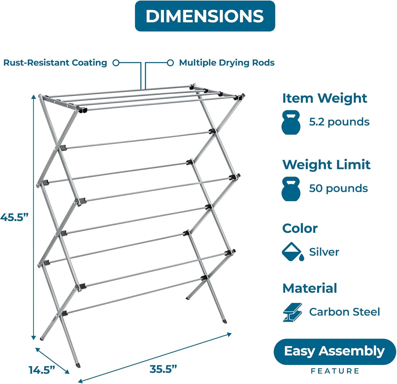 Honey-Can-Do Oversize Collapsible Clothes Drying Rack DRY-09066 Silver, 50 lbs