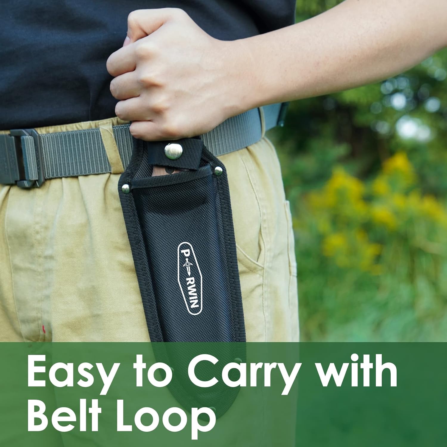 Protect Sheath: A protective sheath with a belt loop protects the knife and can also be hung on your belt for easy use. The top of the handle has a hanging hole so that you can hang it in your garage or tool room for easy storage.