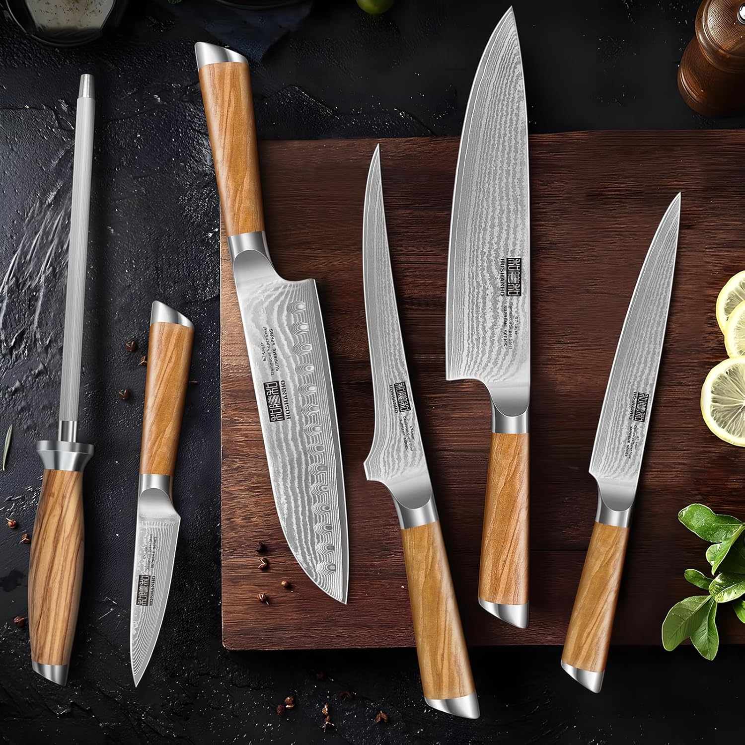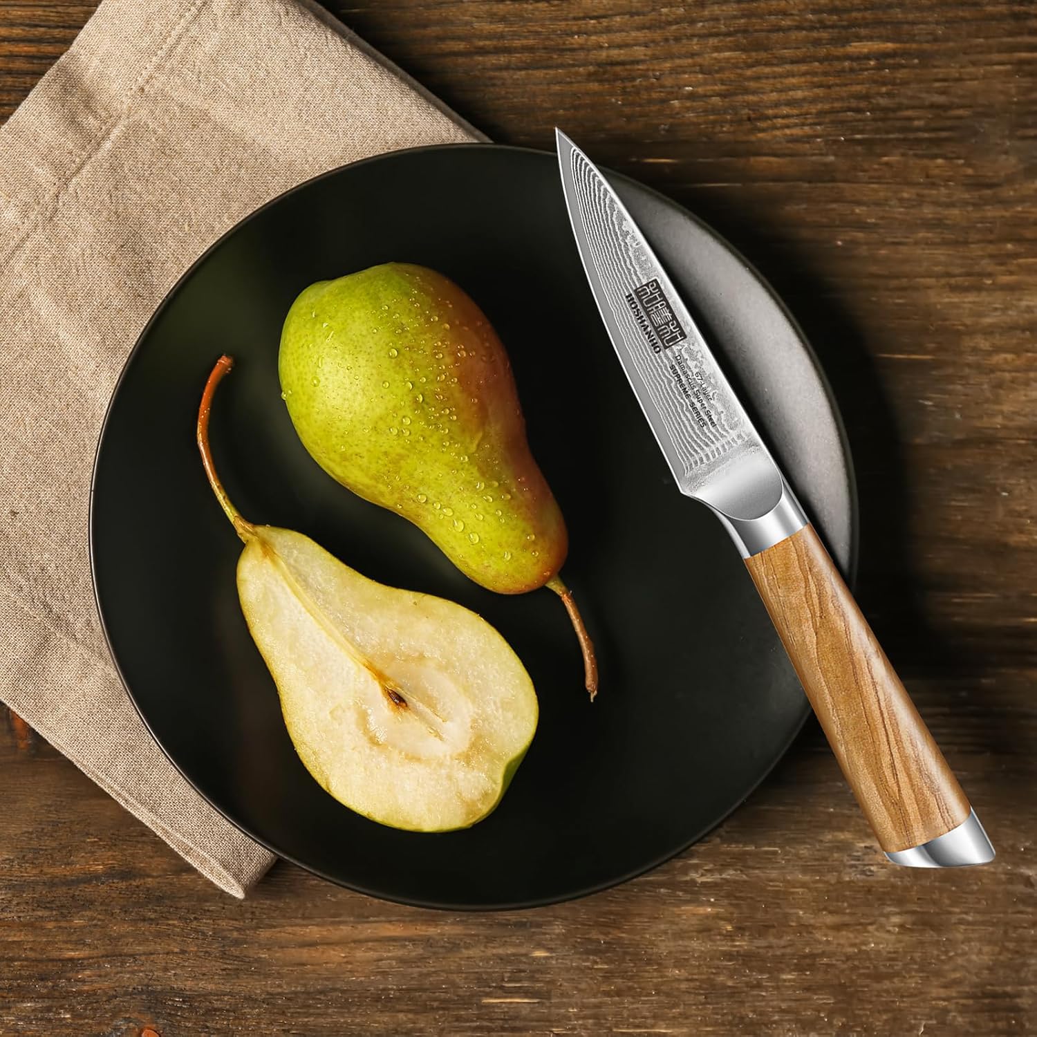 【Comfortable Wood Handle】The kitchen knife handle made of olive wood, which has gone through special new technology treatment, making it extremely impervious to heat and cold.The ergonomic design handles not only offer good grip but also easy to control it.