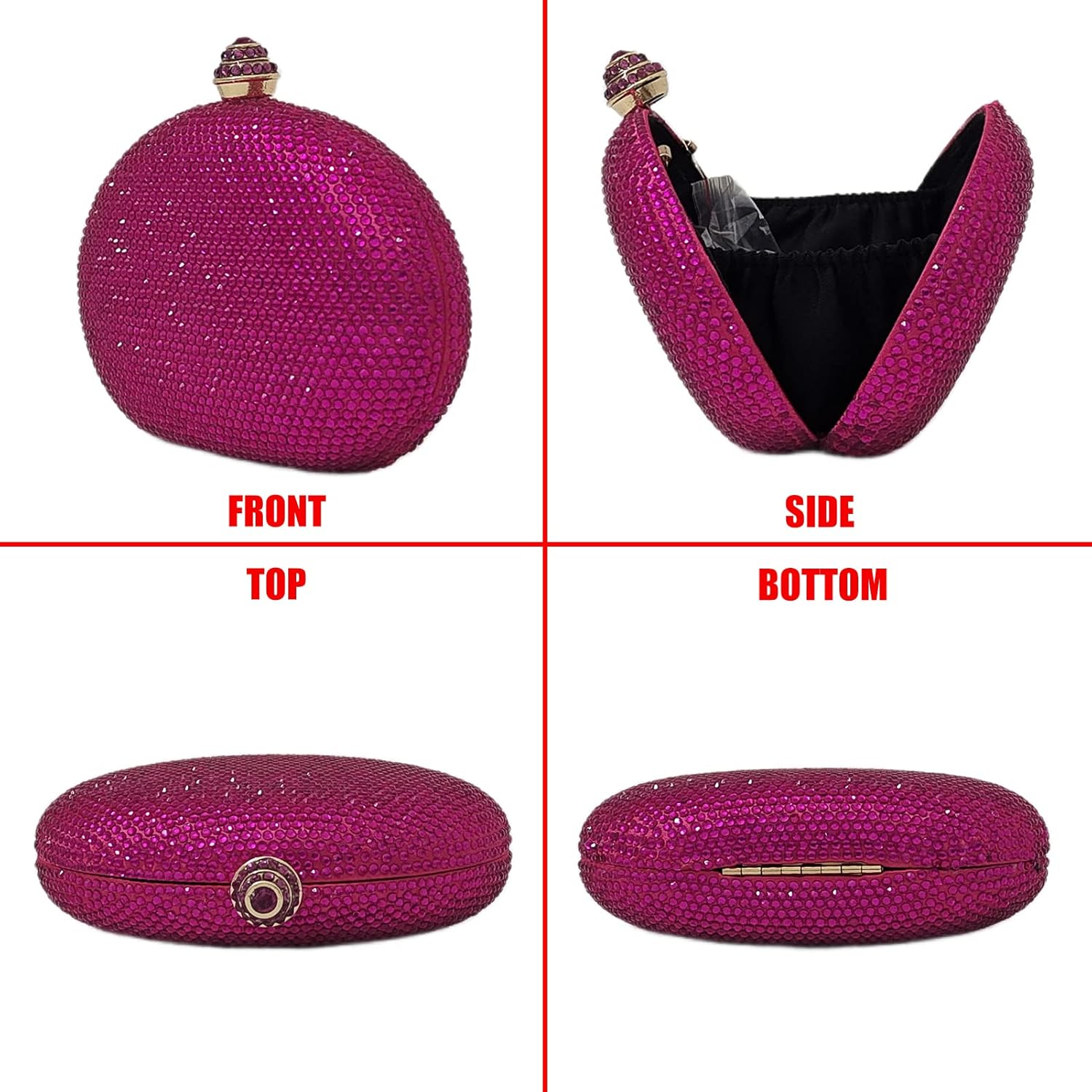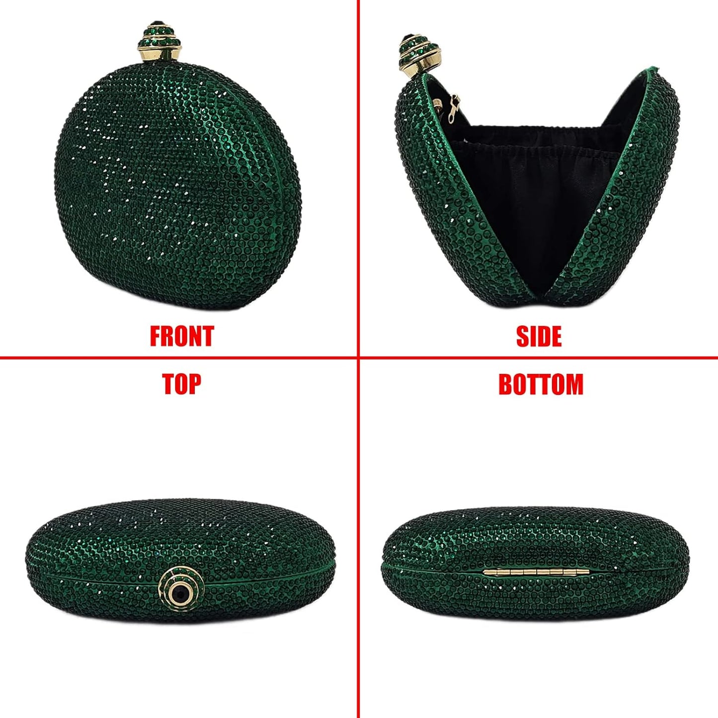 HUANG ZHUANG Egg Shape Crystal Clutch Purse Rhinestone Evening Bag for Women Party Wedding Cute Handbag