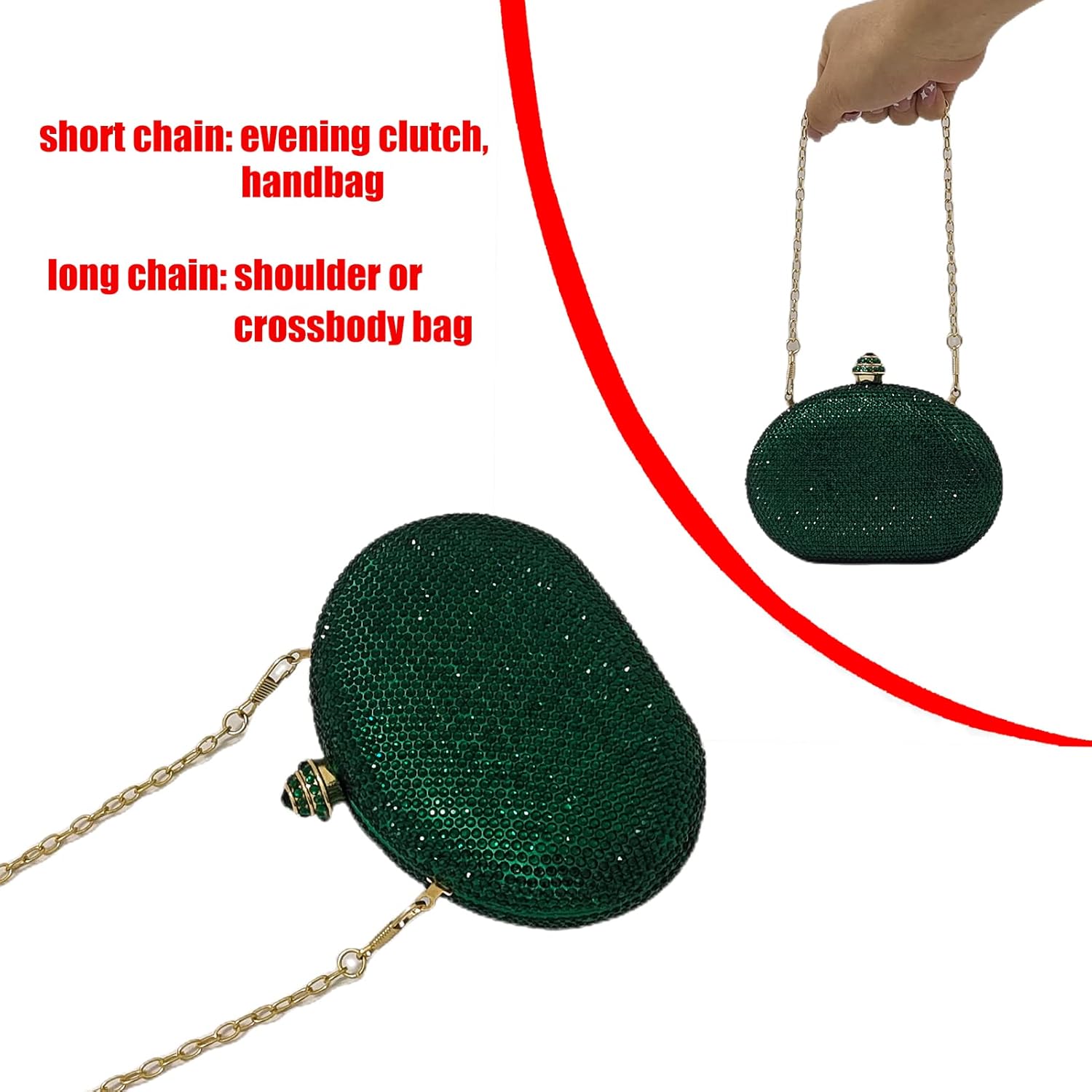 - ●Easy to match evening bag.● This bling clutch two detachable metal chains of different lengths for you to use. The short version is used for evening clutches, handbags, with beautiful evening wear, it is perfect for taking beautiful photos. The longer chain is for a shoulder bag or crossbody bag for easy portability, but also for everyday use.