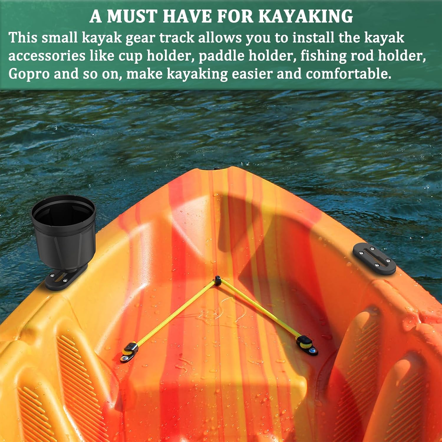 - 【LONG KAYAK TRACK FOR MORE ROOM】7.8 inch of kayak track allow you to have more room to install the kayak track accessories, kayak can even install a cup holder, fishing rod holder, and kayak paddle holder on the kayak rail at the same time. Especially when you fishing on kayak, you will need many kayak accessories to help fishing.