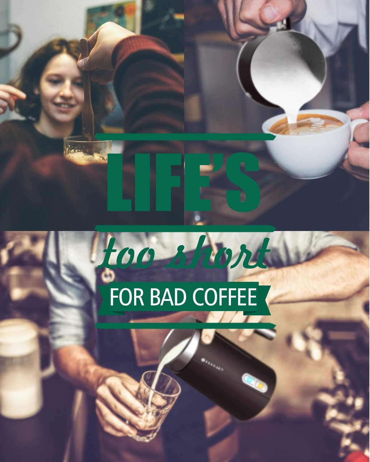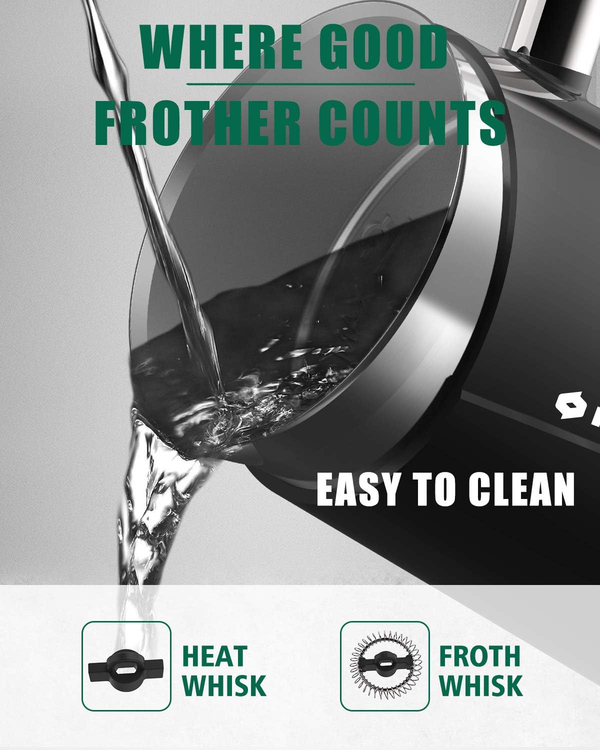 ☕ Durable and Non-stick & Easy to Clean --- High-quality food grade stainless-steel exterior with safe, non-stick coated interior which is effortless to rinse and wipe clean for everyday use. (Note: Do not rinse the outside of the milk frother directly with water, just wipe it with a cloth. Do not put it in the dishwasher for cleaning.)