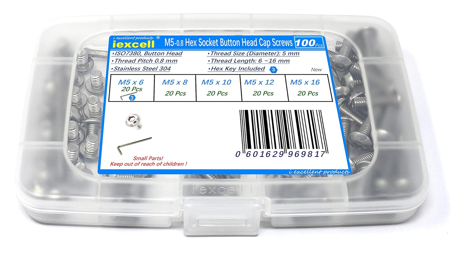 ✔ Includes 50 Pcs M6 x 20mm Hex Socket Button Head Cap Screws , Thread Size ( Diameter ): 6 mm, Thread Pitch: 1 mm, Thread Length: 20 mm, Total Length ( Includes Head ): 23.15 mm, Screw Head Style: Button Head, Head Diameter: 10.29 mm, Head Height: 3.15 mm, Screw Drive Style: Hex Socket Drive, also Known as Internal Hex Drive, Hex Size: 4.0 mm