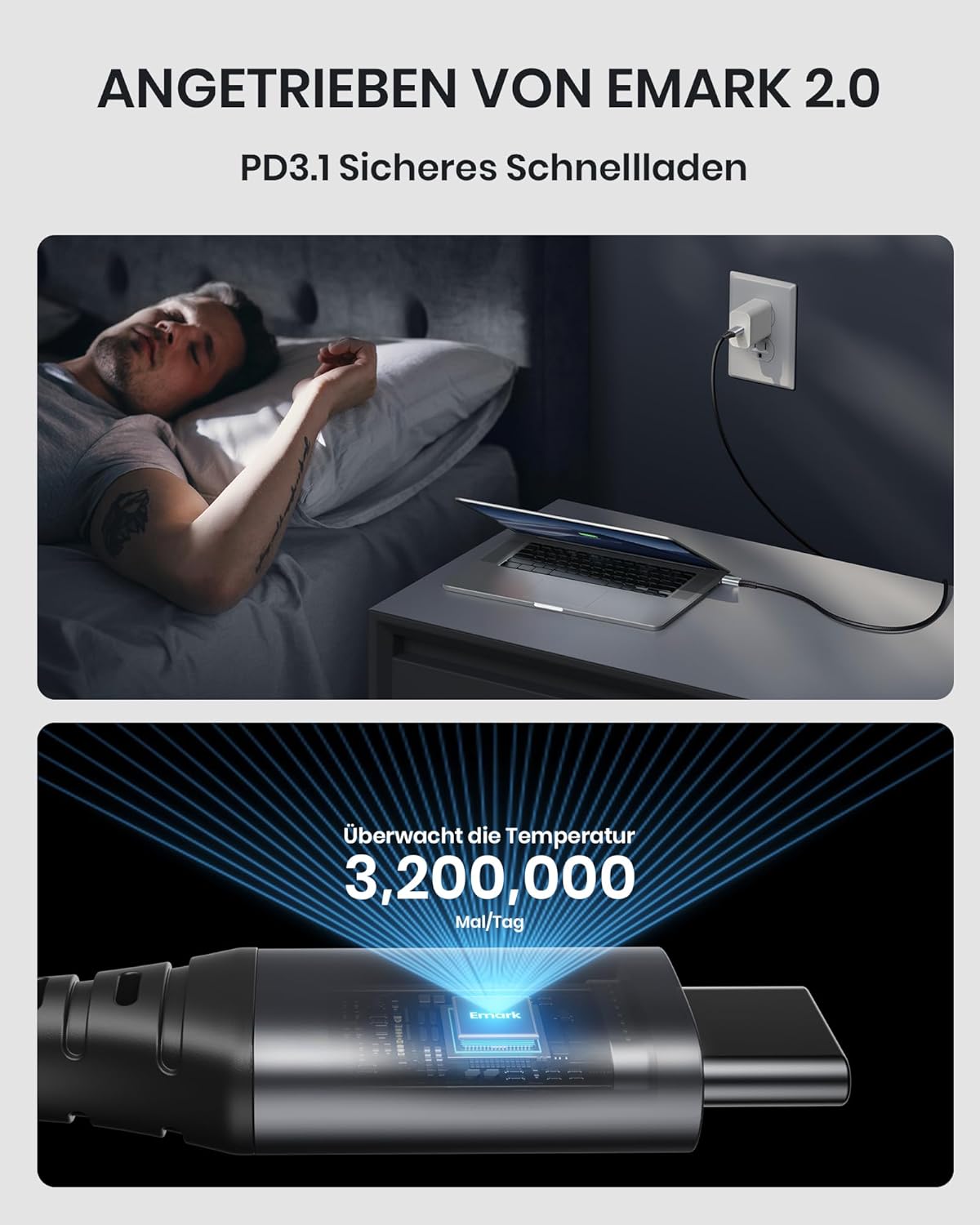 [Fit for All C-Port Devices] Work flawlessly with all existing C-port devices from big to small(240/200/170/140/100/60/18W required)—Laptops, Phones, Tablets, STEAM DECK and Switch, no matter what device you want to charge, it can be done more efficiently.