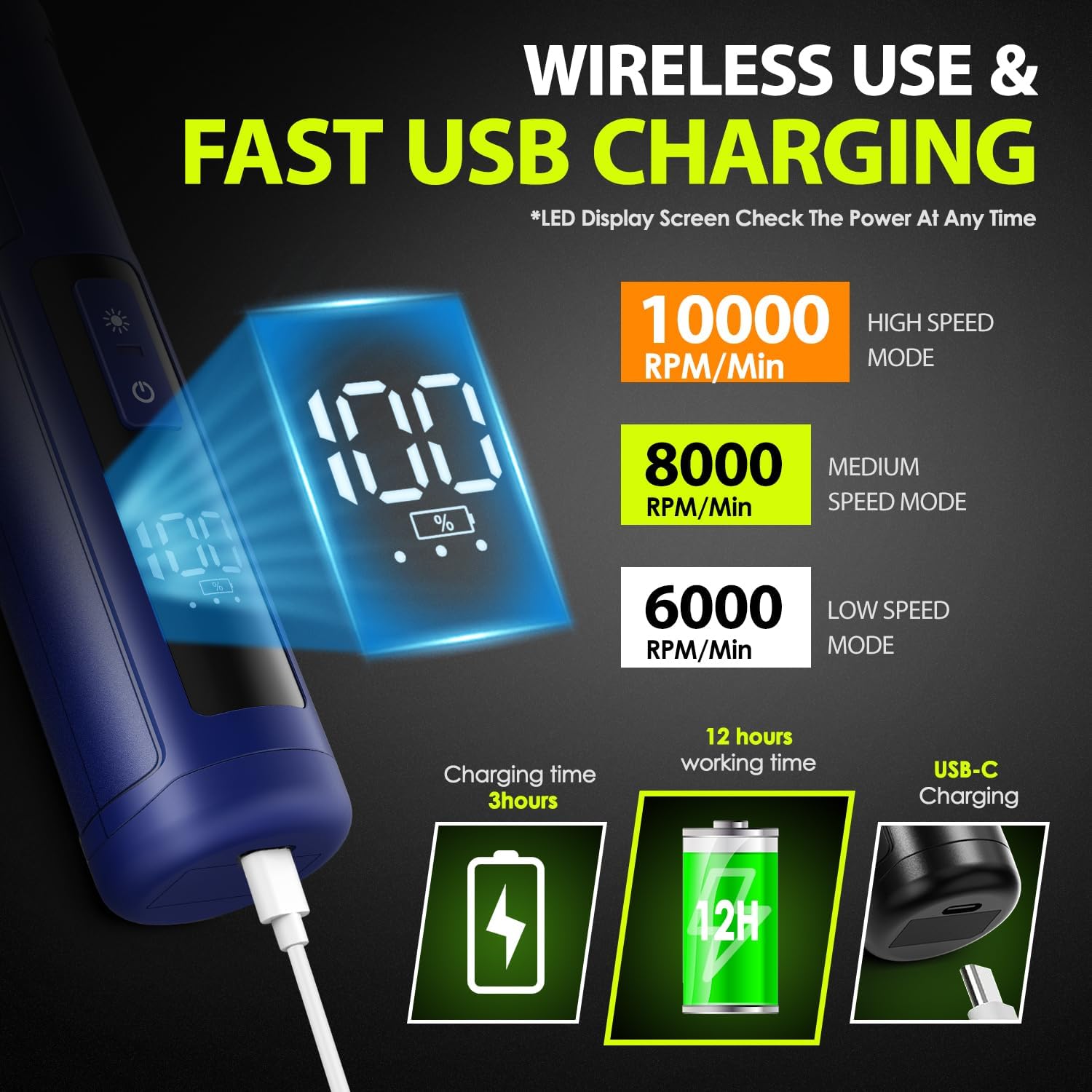- 【3 Speed Switch & Grinding Ports】: IREDOON dog nail trimmer boasts a 3-speed switch and 3 grinding ports, which allows pet owners to adjust the speed and grinding settings based on their pet's size and nail hardness.