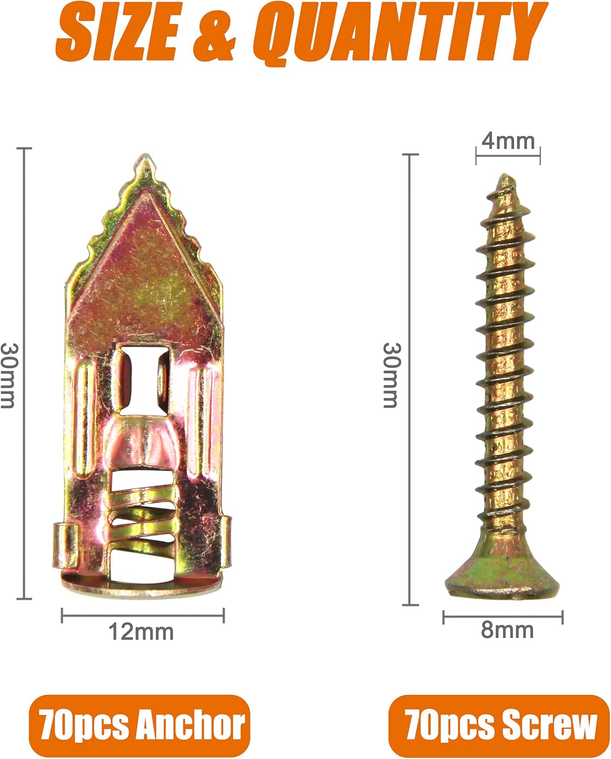 【SIZE & QUANTITY】You will get total 140pcs 12x30mm anchors and screws. It includes 70pcs Anchors and 70pcs screws.