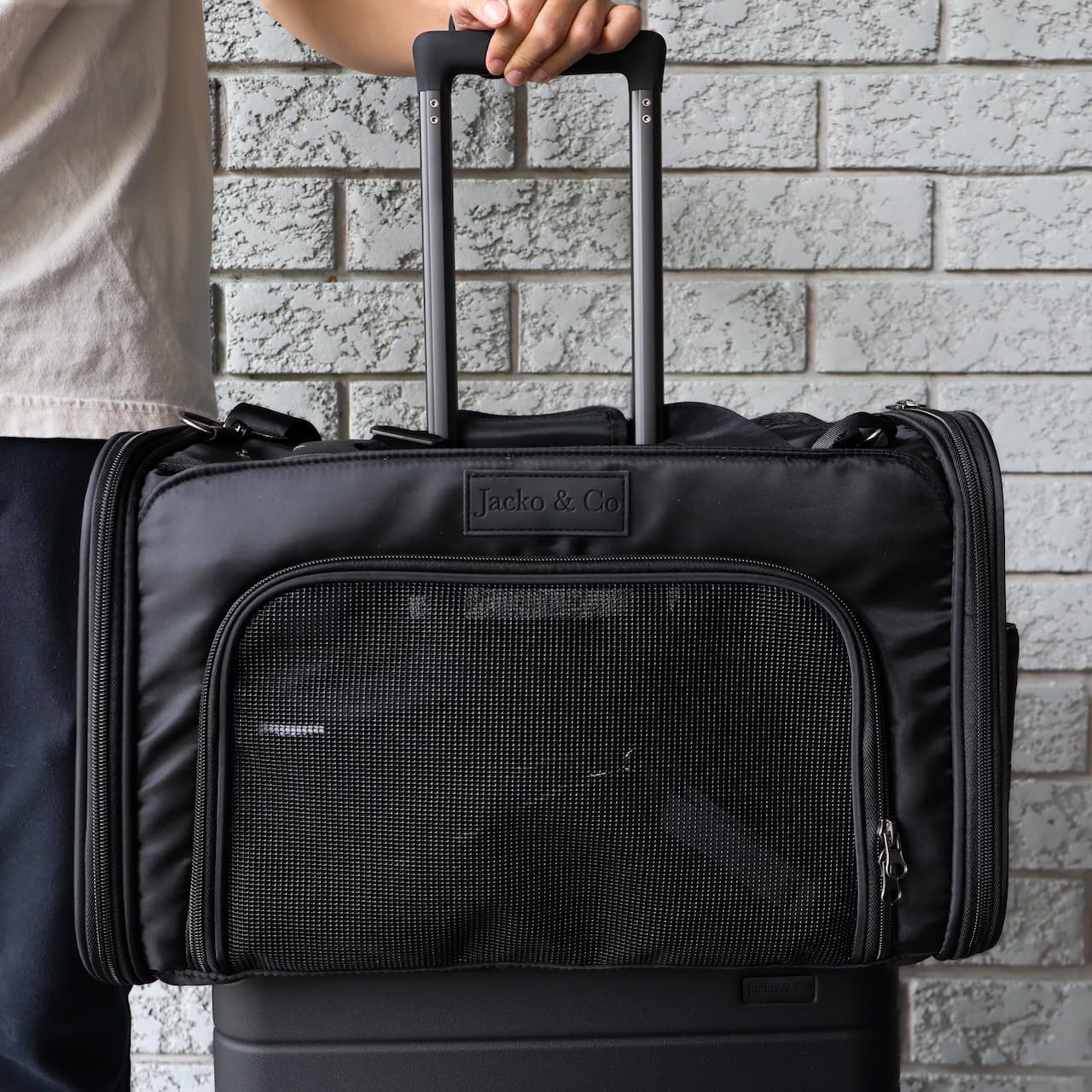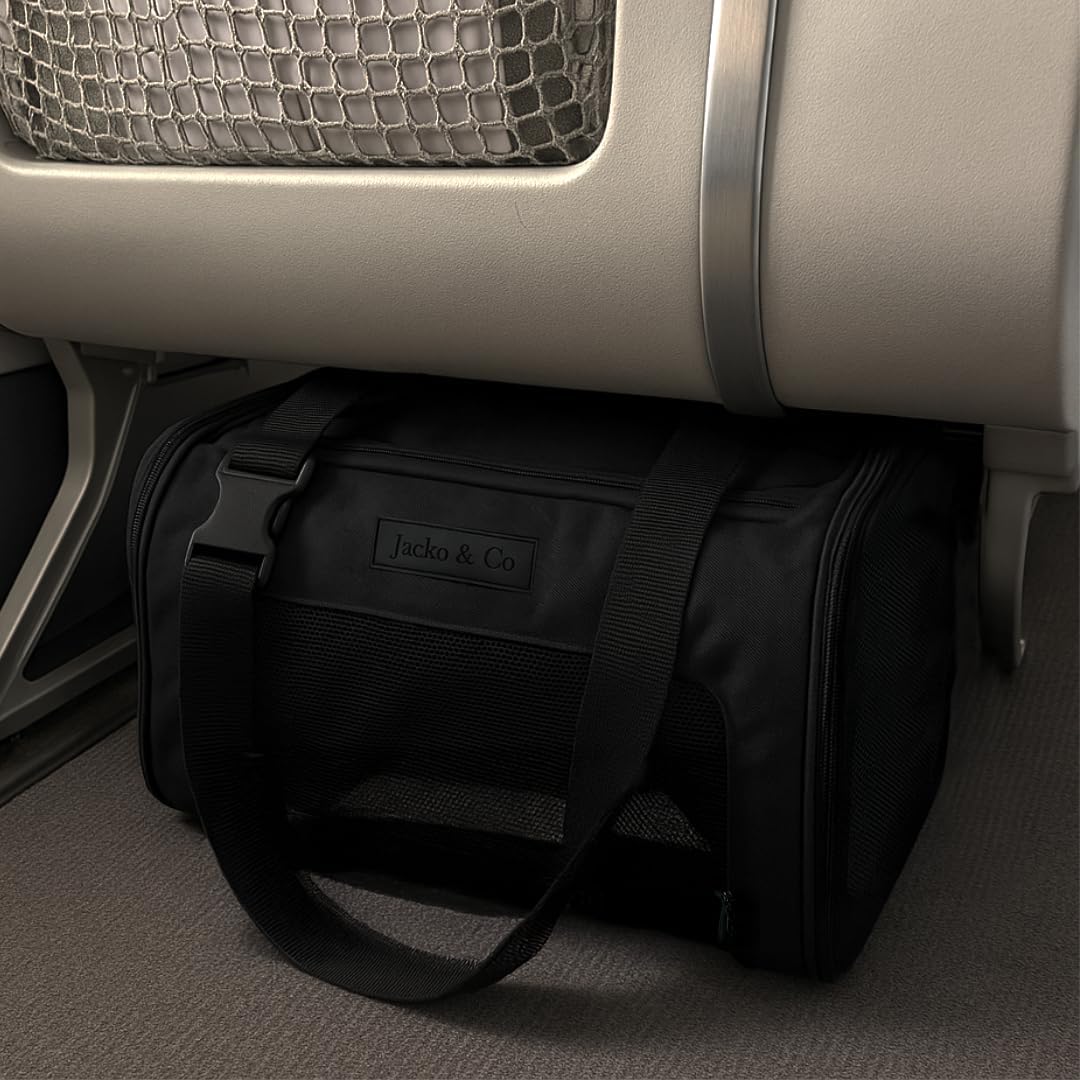 JACKO & CO - Premium Dog & Cat Carrier, TSA Airline Approved with Luggage Loop, Soft-Sided Travel Carrier Bag for Pets, Small Dogs, Puppies, Kittens up to 10lbs, Ventilated Windows & Fully Collapsible