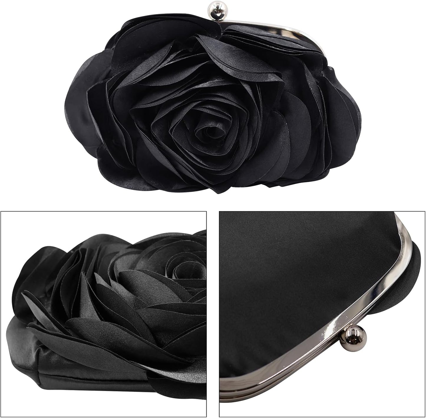 JAMBHALA Mini Women Rose Clutch Bags Evening Handbag with Detachable Chain for Wedding Party
