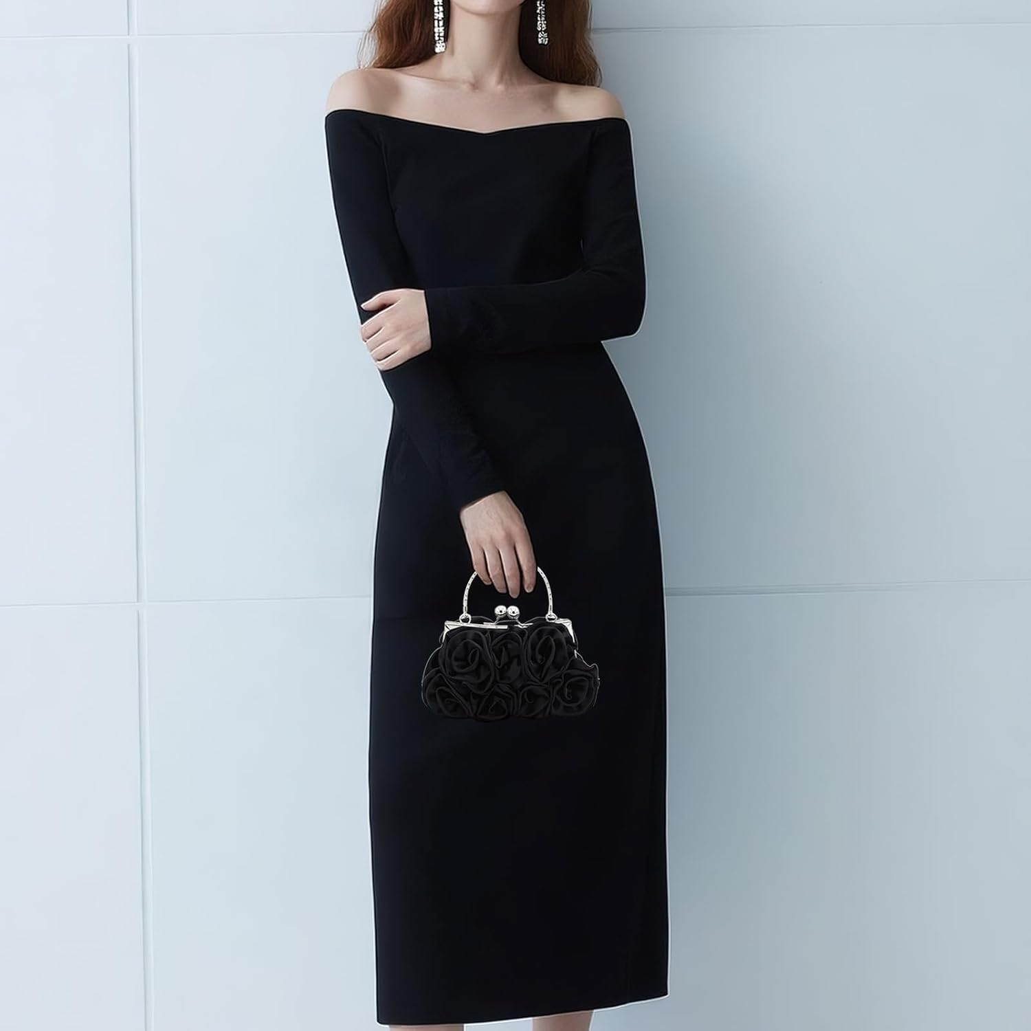 - Features - The rose shaped wristlet comes with a detachable chain strap to meet your different needs, can be used as a shoulder bag, crossbody bag, tote, evening bag and clutch, with double kiss lock at the handle to keep your belongings Locked and safe.