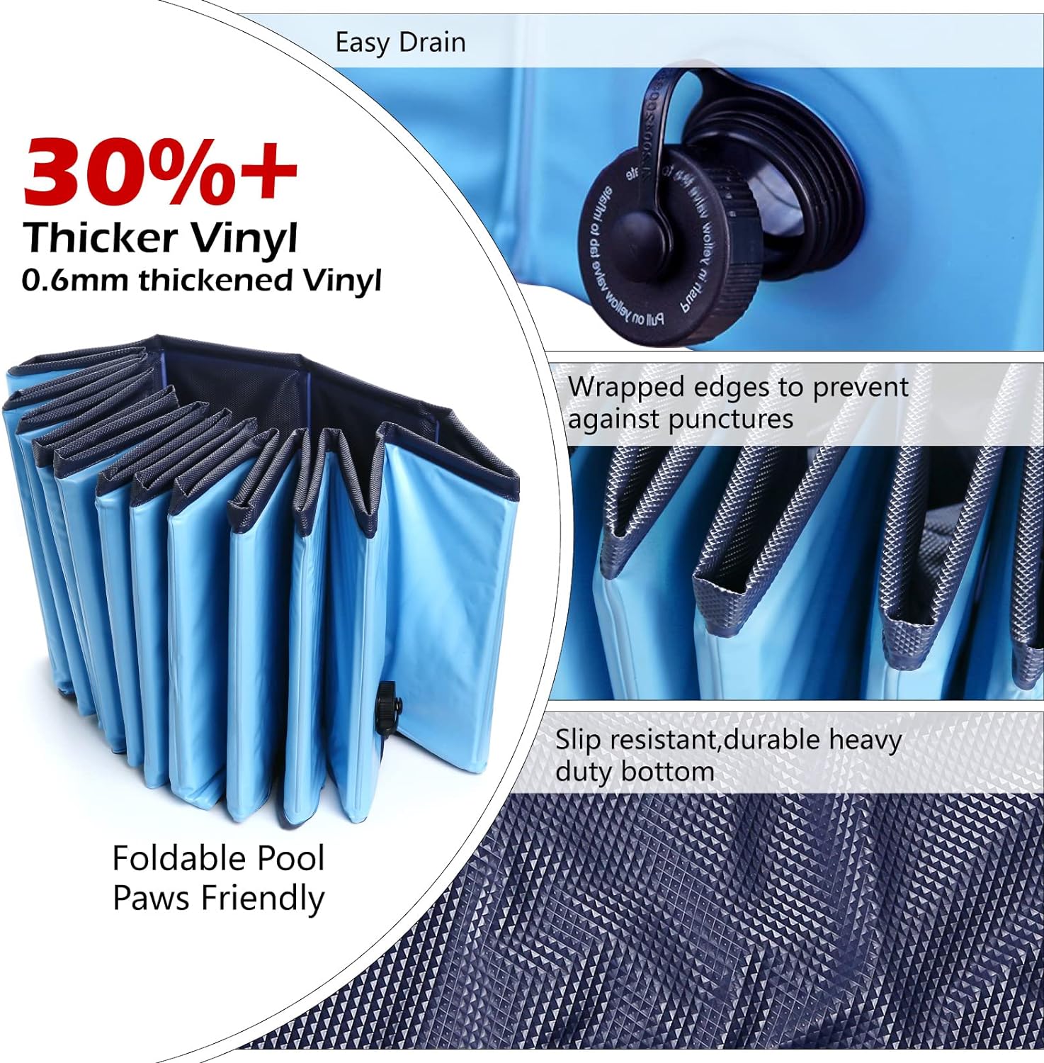 Jasonwell Foldable Dog Pet Bath Pool Collapsible Dog Pet Pool Bathing Tub Kiddie Pool Doggie Wading Pool for Puppy Small Medium Large Dogs Cats and Kids 63" Blue
