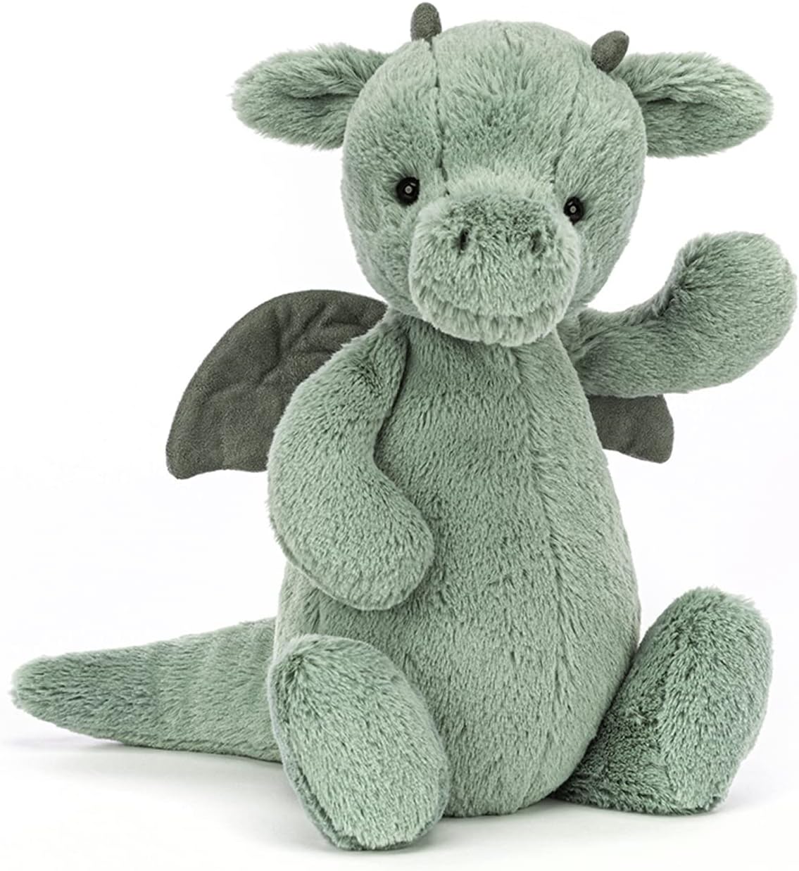 Bashful Dragon: The only thing fierce about this dragon stuffed animal is his loyalty! Bashful Dragon brings the snuggles in soft, sage-green fur from his head to his tail. Two tiny suedette horns and matching wings make this whimsical pal a favorite for all ages.