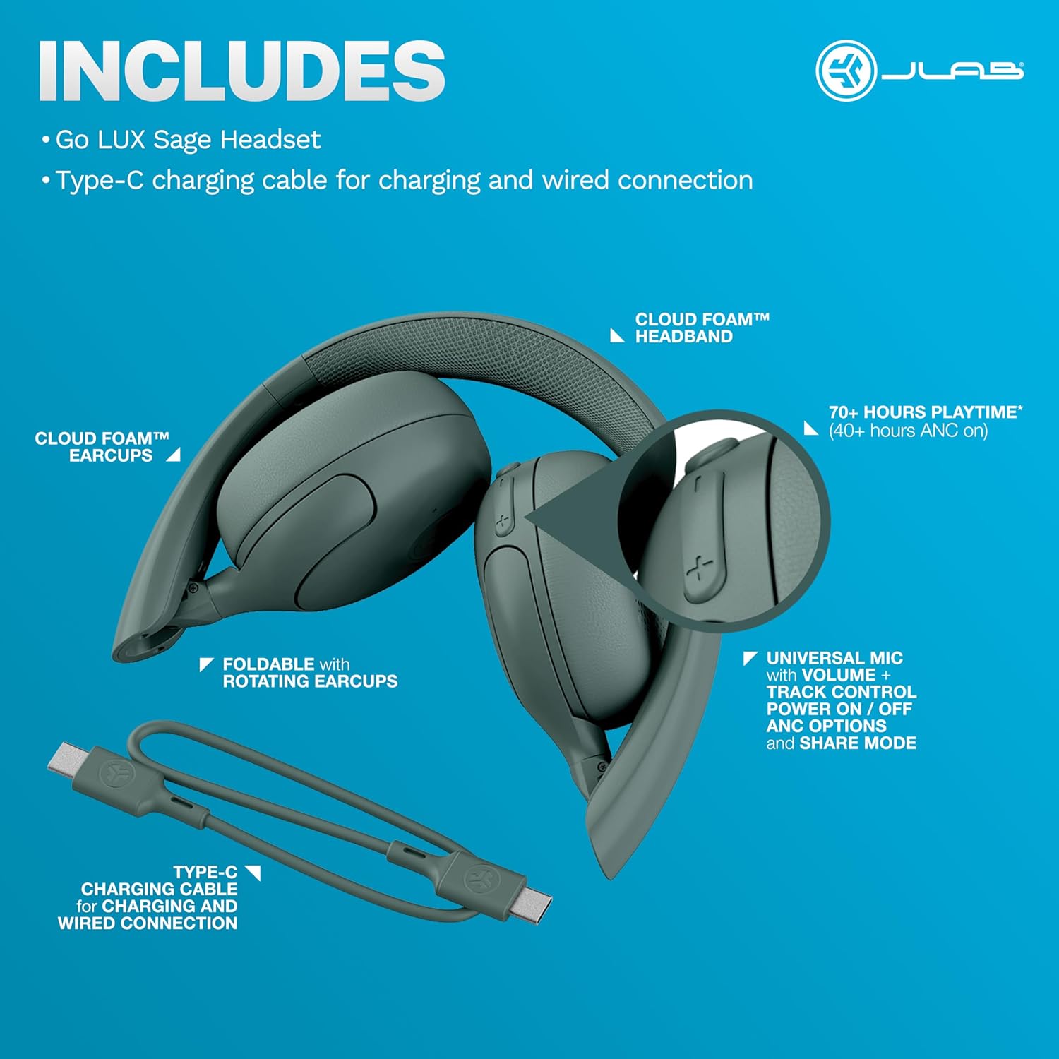 JLab Go Lux ANC Wireless Headphones, Cloud White, Hybrid Active Noise Cancelling, Premium On-Ear Bluetooth Headset, Customizable Sound, Be Aware Mode, Cloud Foam Comfort, Multipoint ConnectionPL17-B0DRDSMX41