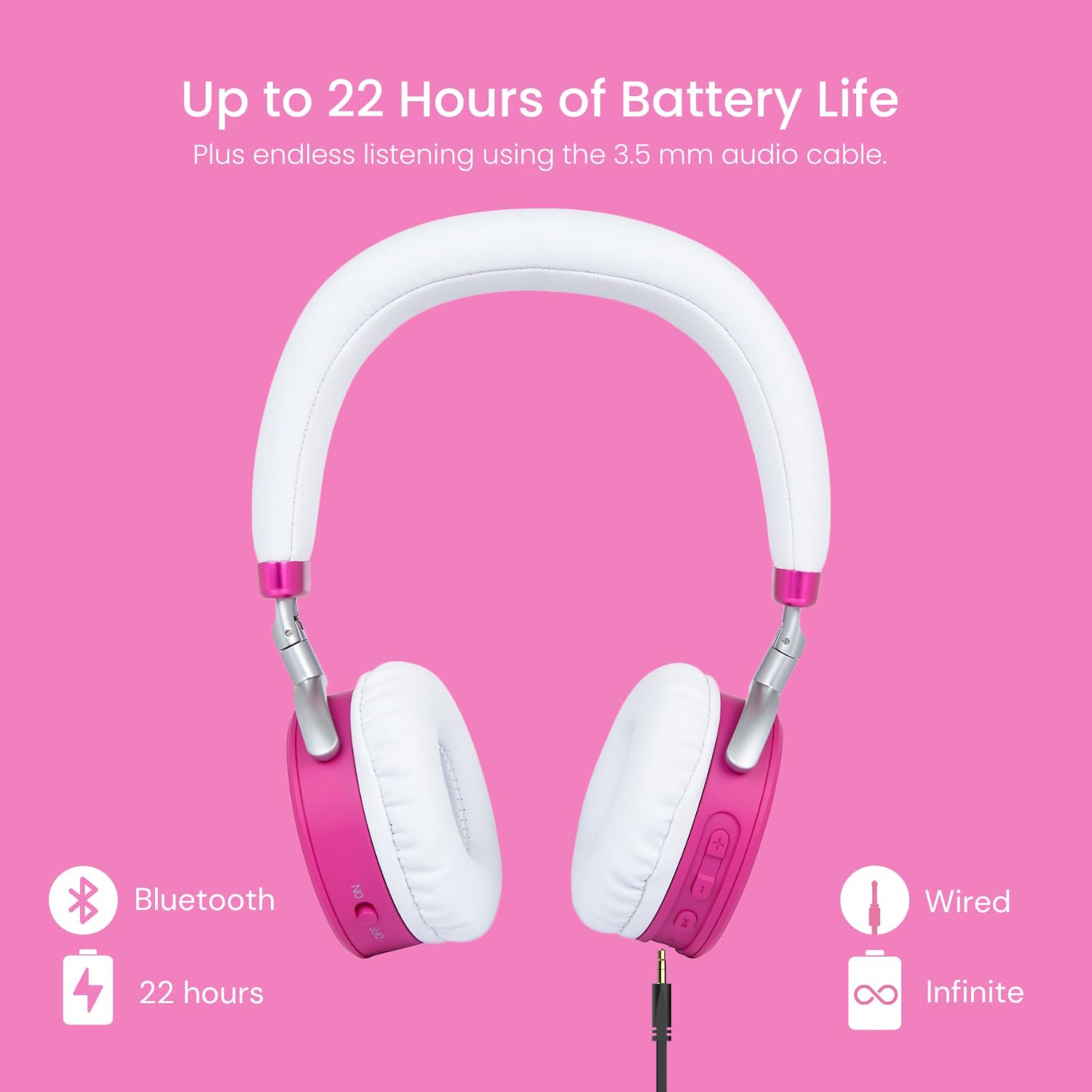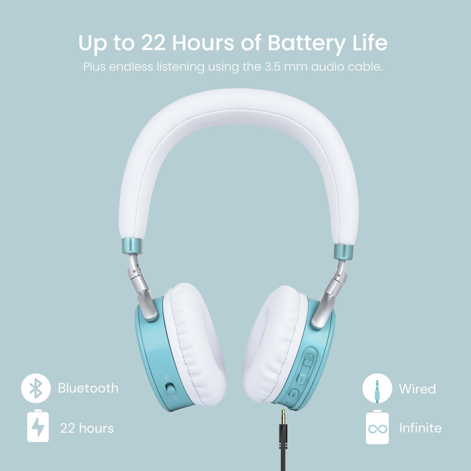 - FEWER WIRES, MORE FREEDOM – Tired of tangled wires? Puro headphones for kids feature wireless Bluetooth v4.0 technology with a 30-ft. range! But don’t worry about frequent recharging ,the lithium-ion battery has a working life of 22 hours.