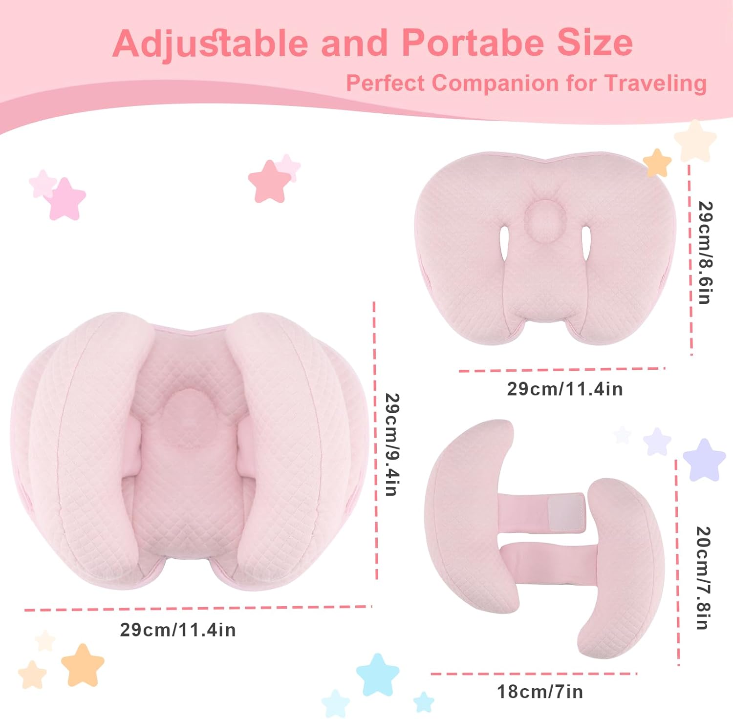 - Removable baby neck pillow protects head releasing shaking when you use it on airplane or stroller, and the width is adjustable from 3.5 to 5 inches (9 to 12 cm),head support pillow for baby, headrest pillows for cars, easy to carry around and perfect for traveling with your baby.
