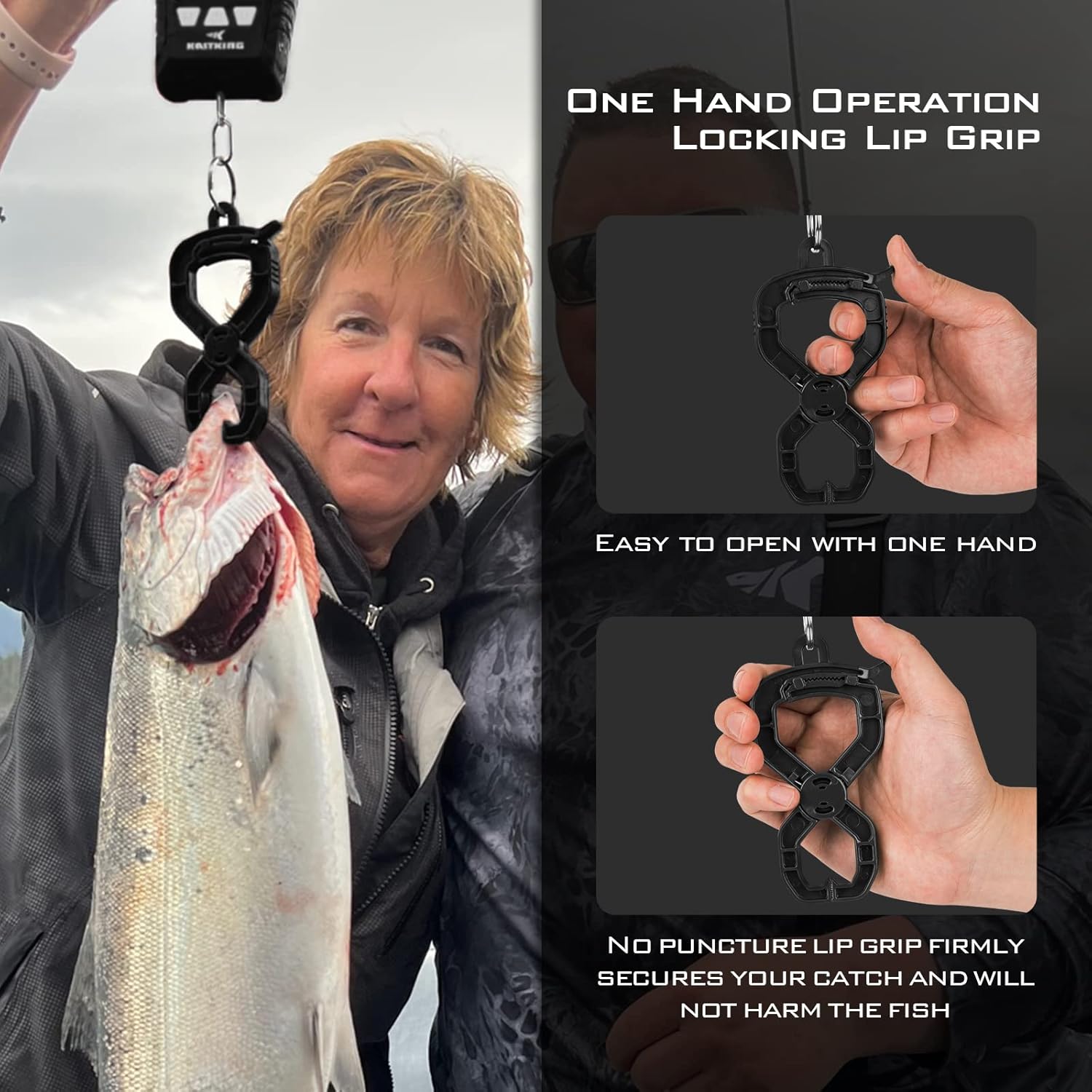 KastKing Fish Scale, WideView Floating Waterproof Digital Scale with No-Puncture Lip Gripper, 2.5” Large LCD Display, 110lb Capacity, Stores up to 9 Weights, Black