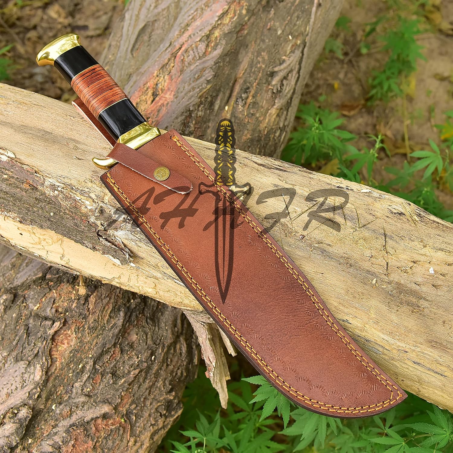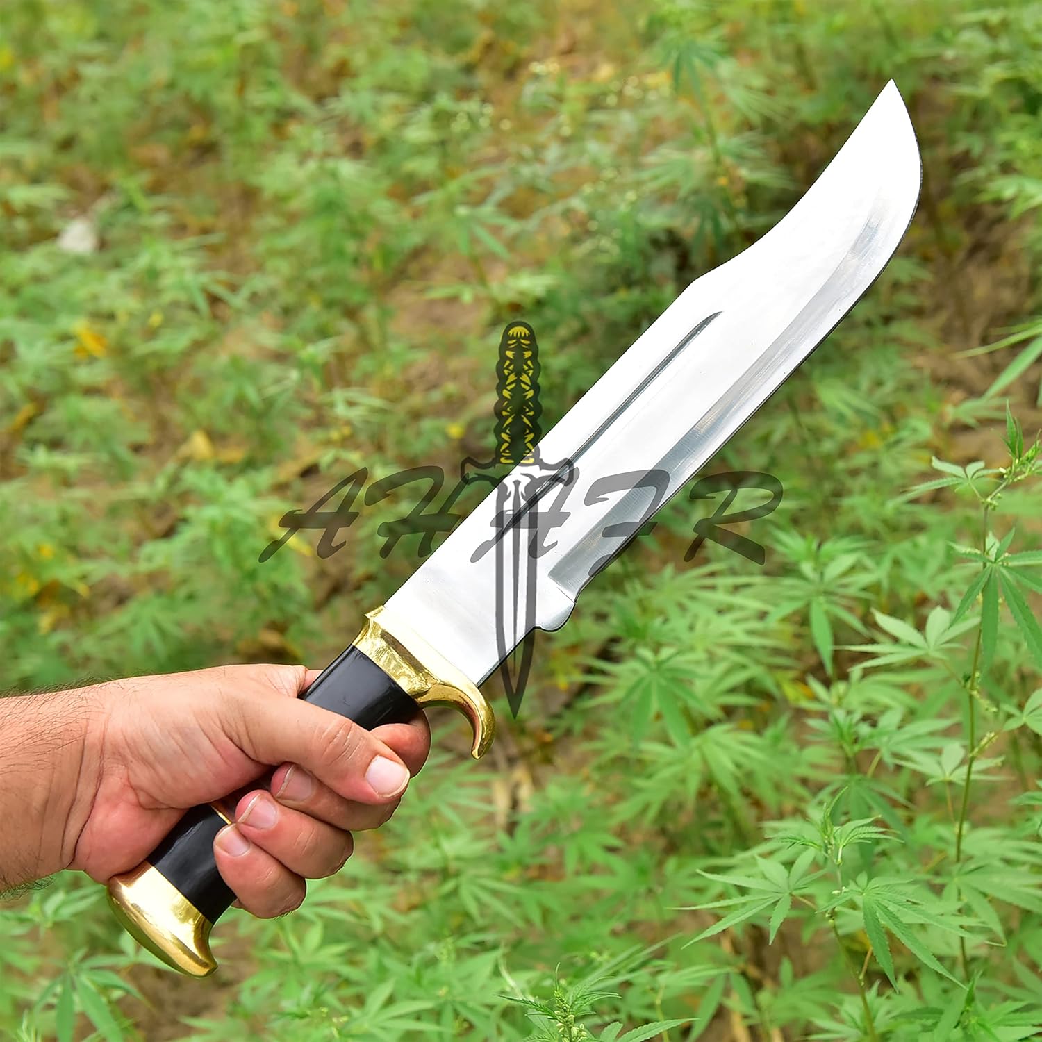 - AHAFR KE-0547-HK D 2 Steel Custom Handmade 18" Buffalo Horn Handle Knife Large Hunting Bowie Knife With Leather Sheath & Belt Loop, Razor Sharp Custom Hunting Knife For Men