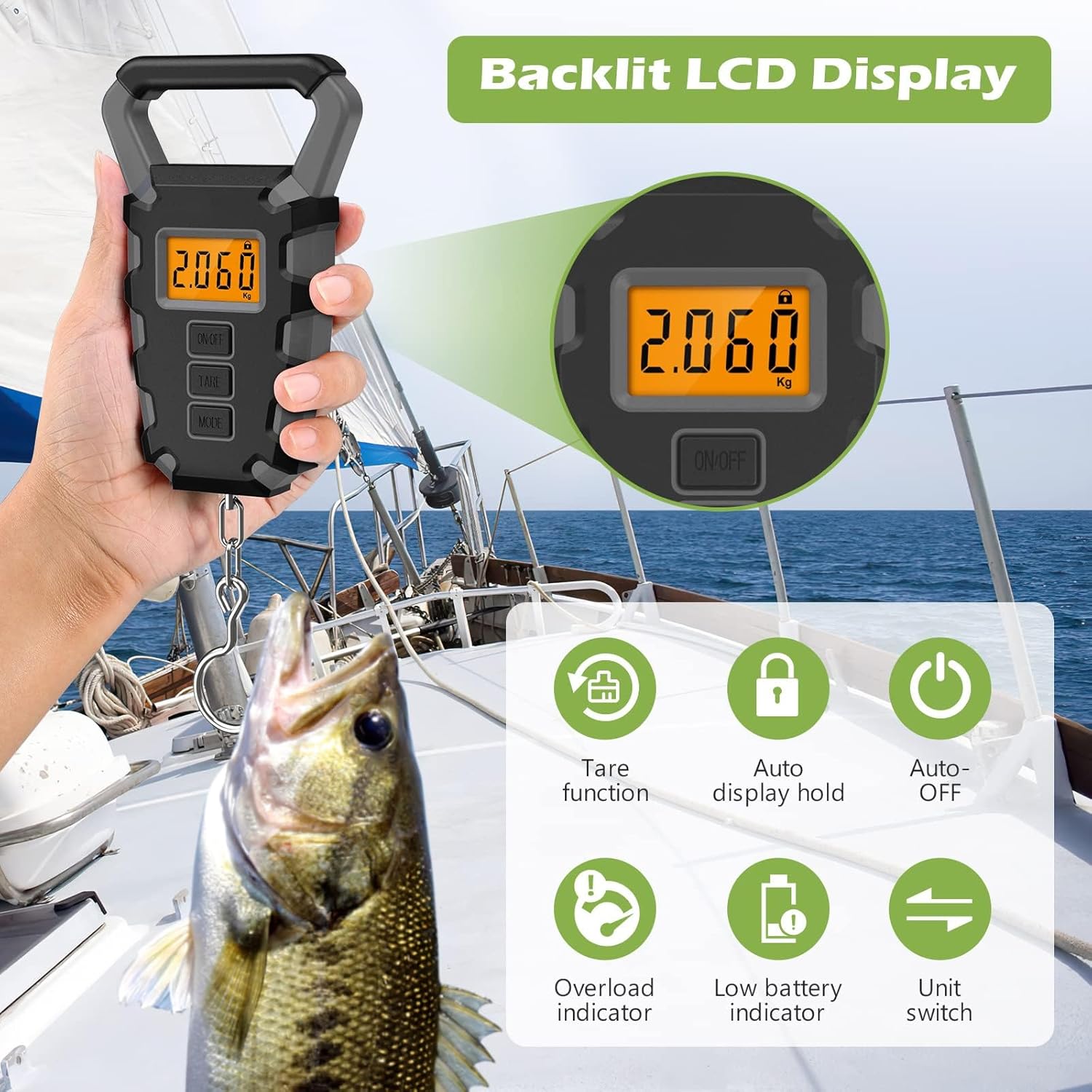 【IPX4 Waterproof Digital Scale】This fishing scale is built-in high precision sensor system, which provides you with instant and accurate weight readings from 15g to 50kg. The response time is about 2 seconds. And the waterproof design keeps it functioning well in all weather conditions.