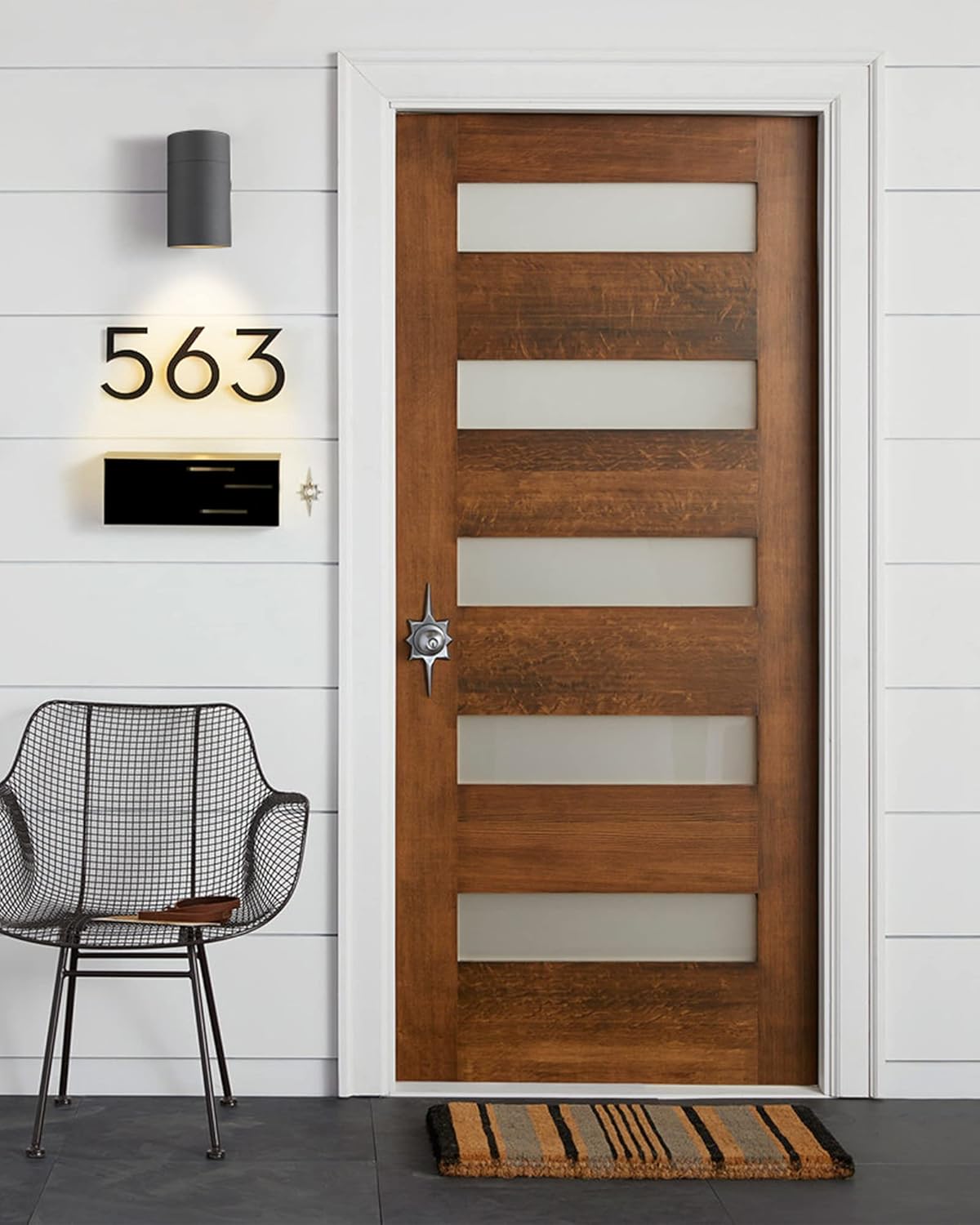 Outdoor Wall Light Dimensions: 7.48"(H)x4.17"(E)x4.72"(W), Size of mounting base: 4.72" (H) x 4.72" (W) cylinder wall light. Outdoor wall lights should be approximately 1/4 of the door frame height. It is also recommended the center of your light fixture be 66” from the floor.