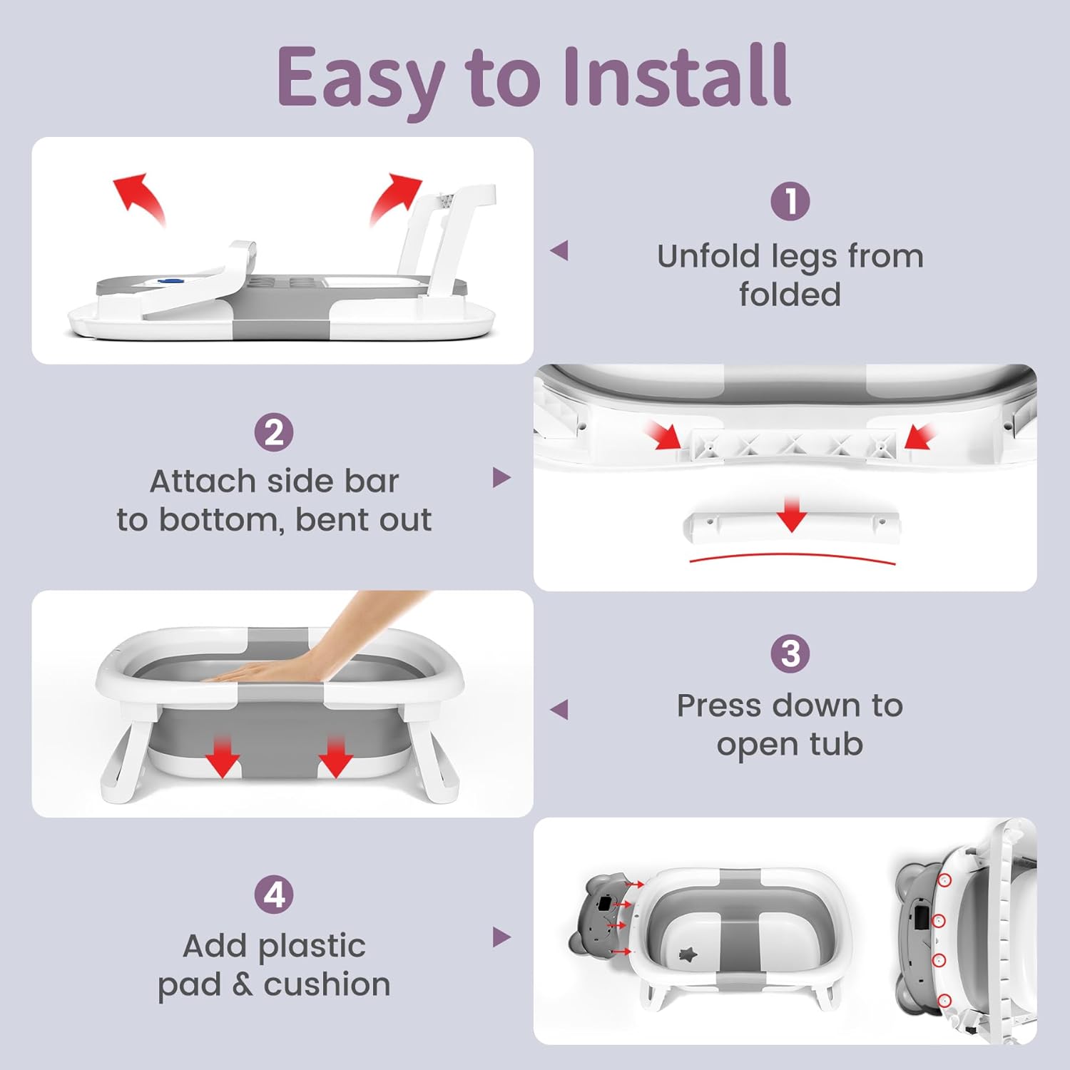 - Safe & Cozy: Our Kerbwry baby bathtub, crafted from gentle, durable materials, comes with a soft towel and cushion for optimal comfort. It's a top-tier baby essential