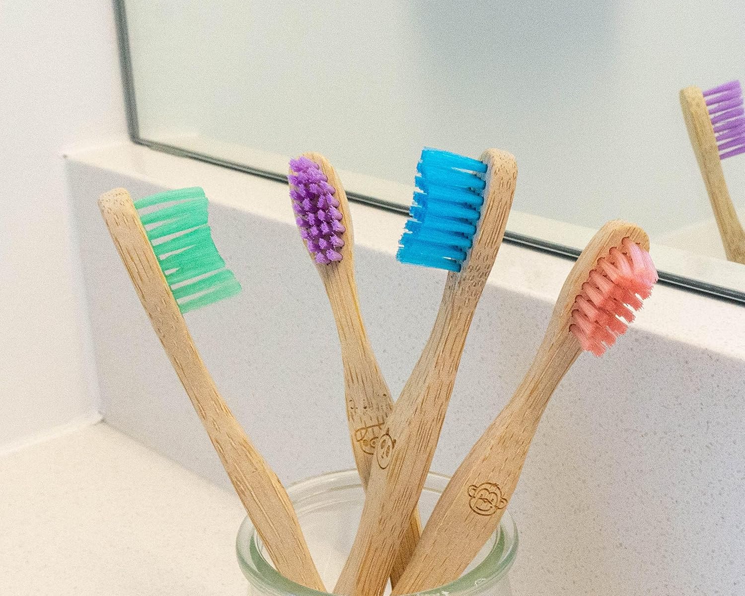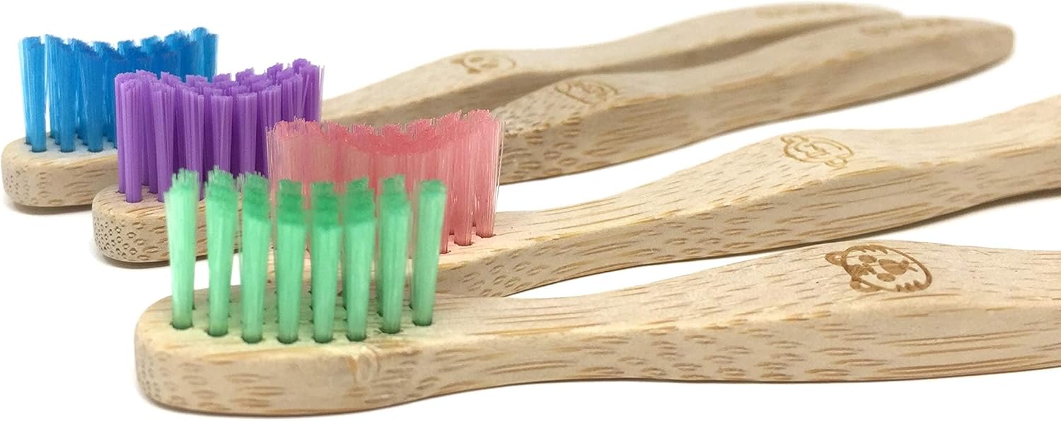 KIDS Bamboo Toothbrush, 4 Pack, Fun Animals, Eco Friendly & Natural, BPA Free, Wooden Toothbrushes, Zero Waste Products, Organic, Vegan, Tooth Brush, Non Plastic, Environmental