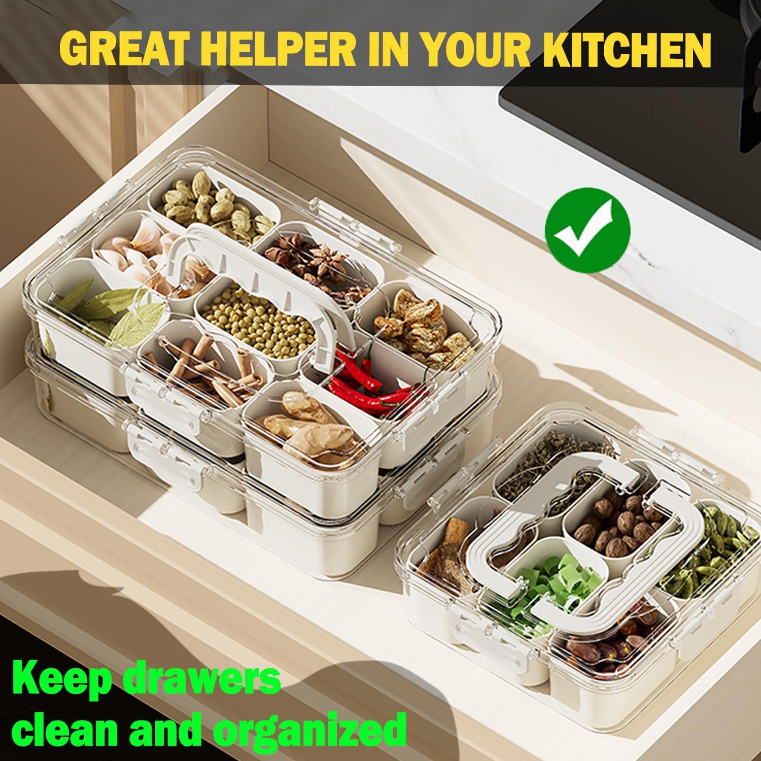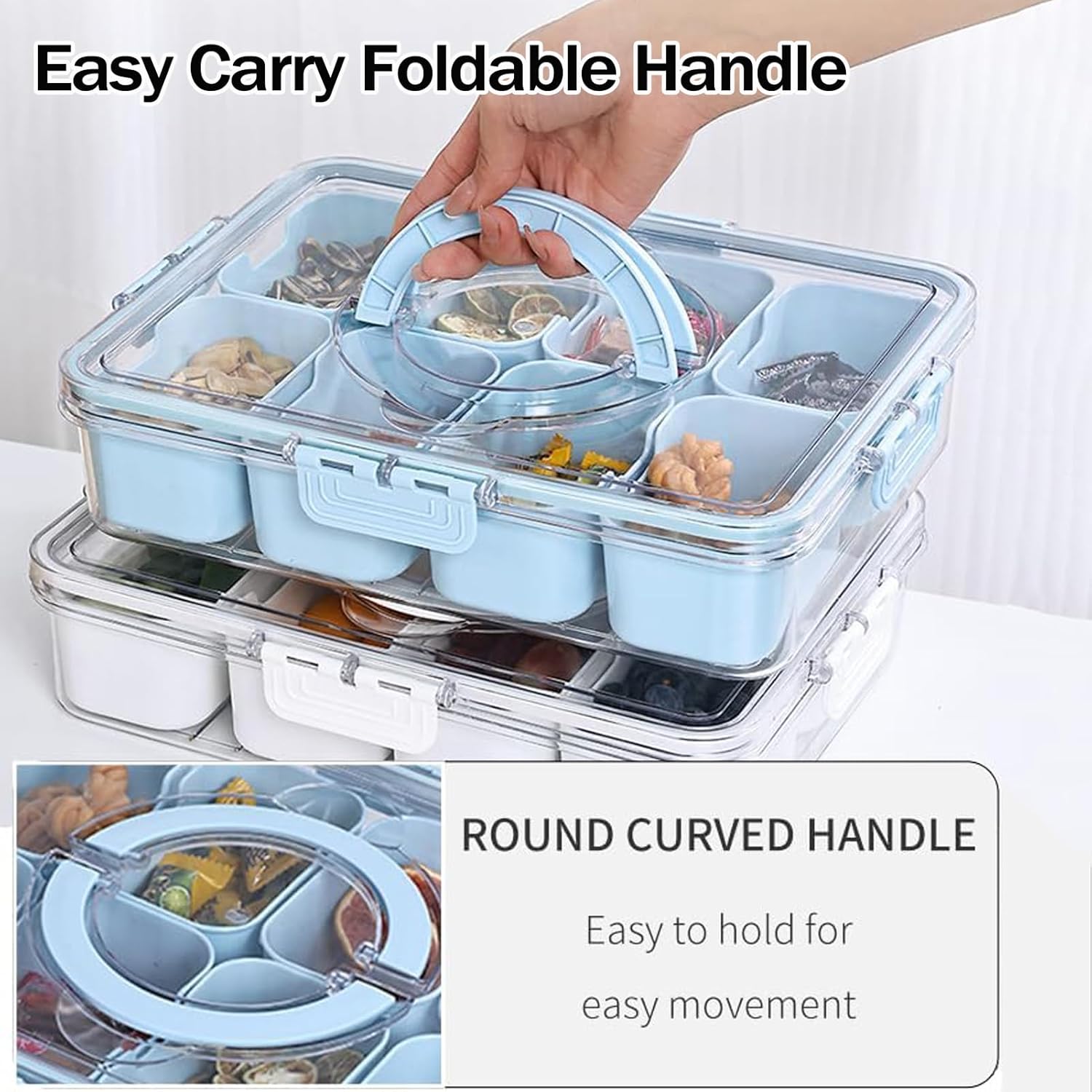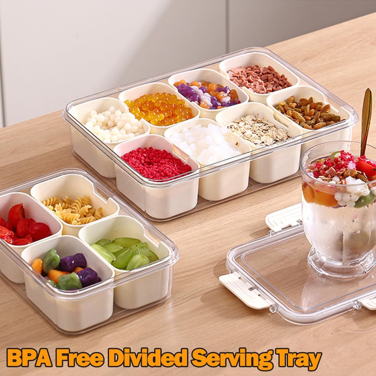 【Easy Carry Foldable Handle】 This divided serving tray comes with a lid and handle, 8 Compartments-Portion out your favorite fruit snacks and they won't get mixed up. And the silicone sealing ring will keep fresh. Whether you're on the train, on holiday at the seaside or at a picnic, our snackle box is easy to carry