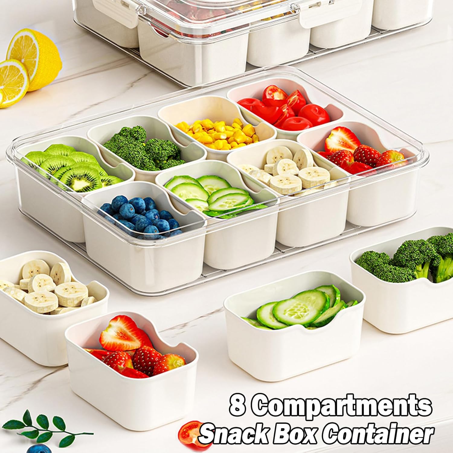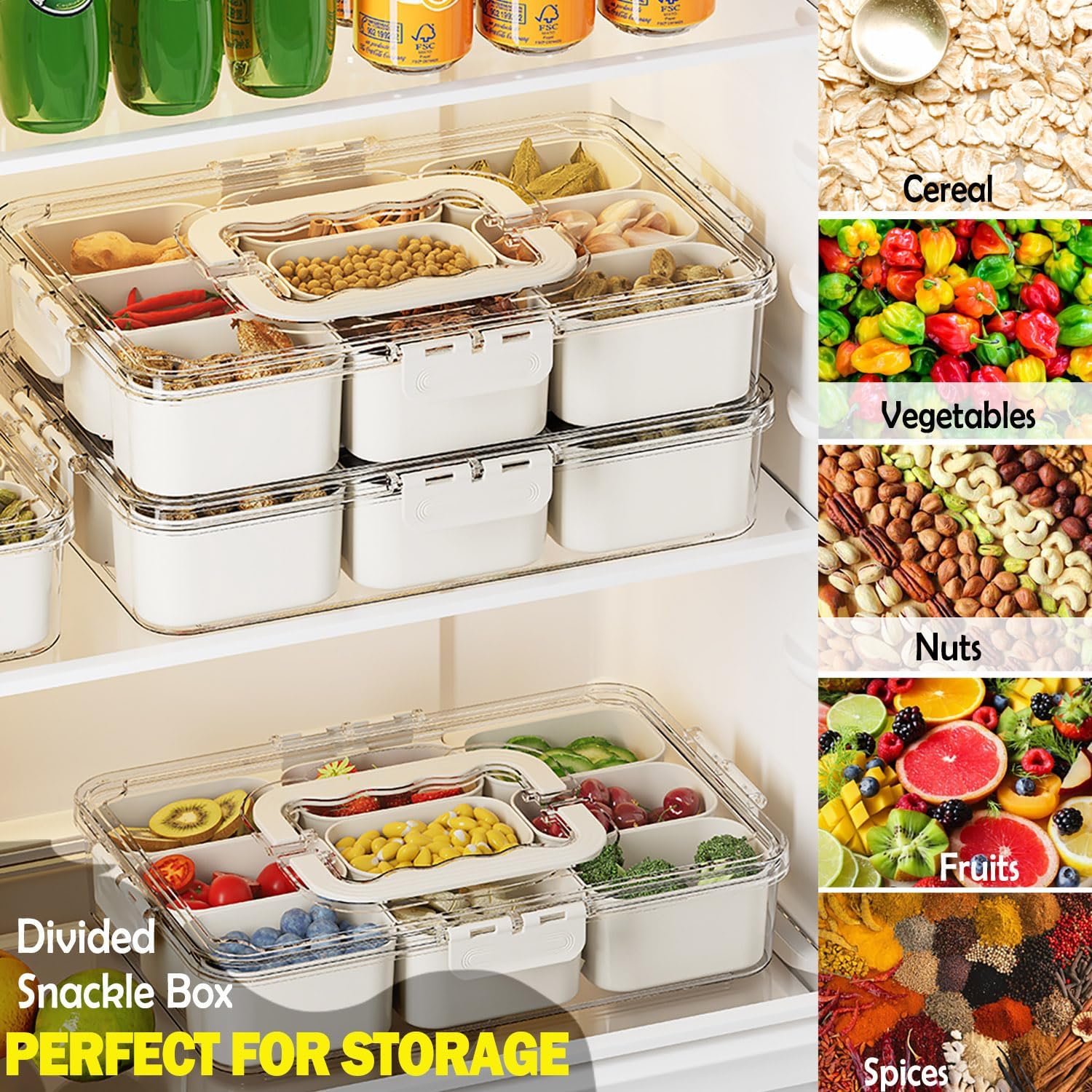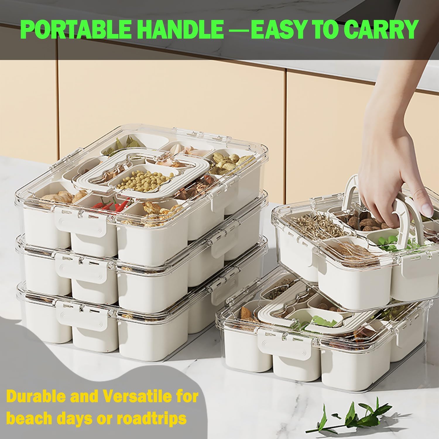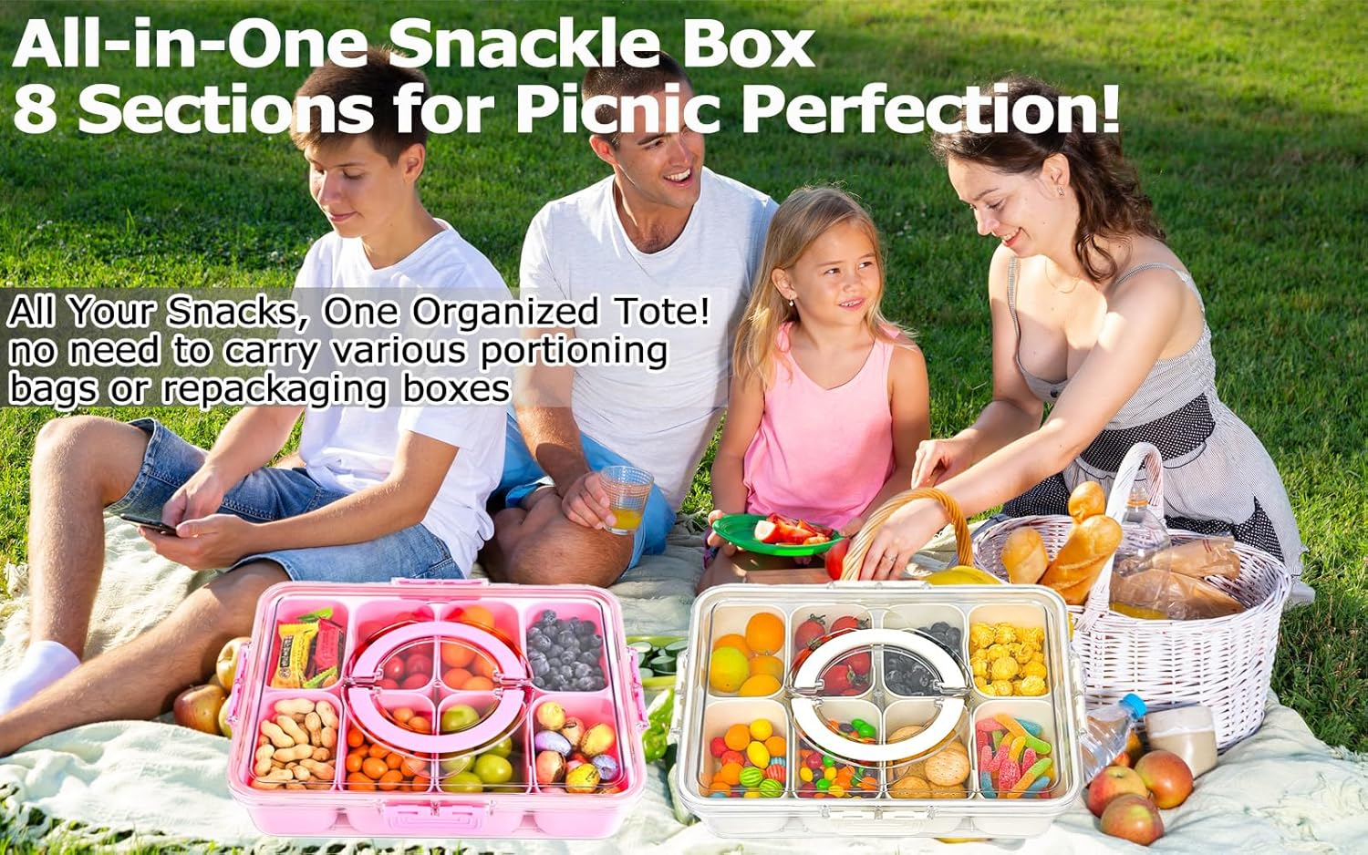 【All Your Snacks, One Organized Tote】 No need to carry various portioning bags or repackaging boxes. The 8-compartment design can hold 8 different kinds of food. Choosing 2 packs is enough for a family of 4 to go on a picnic