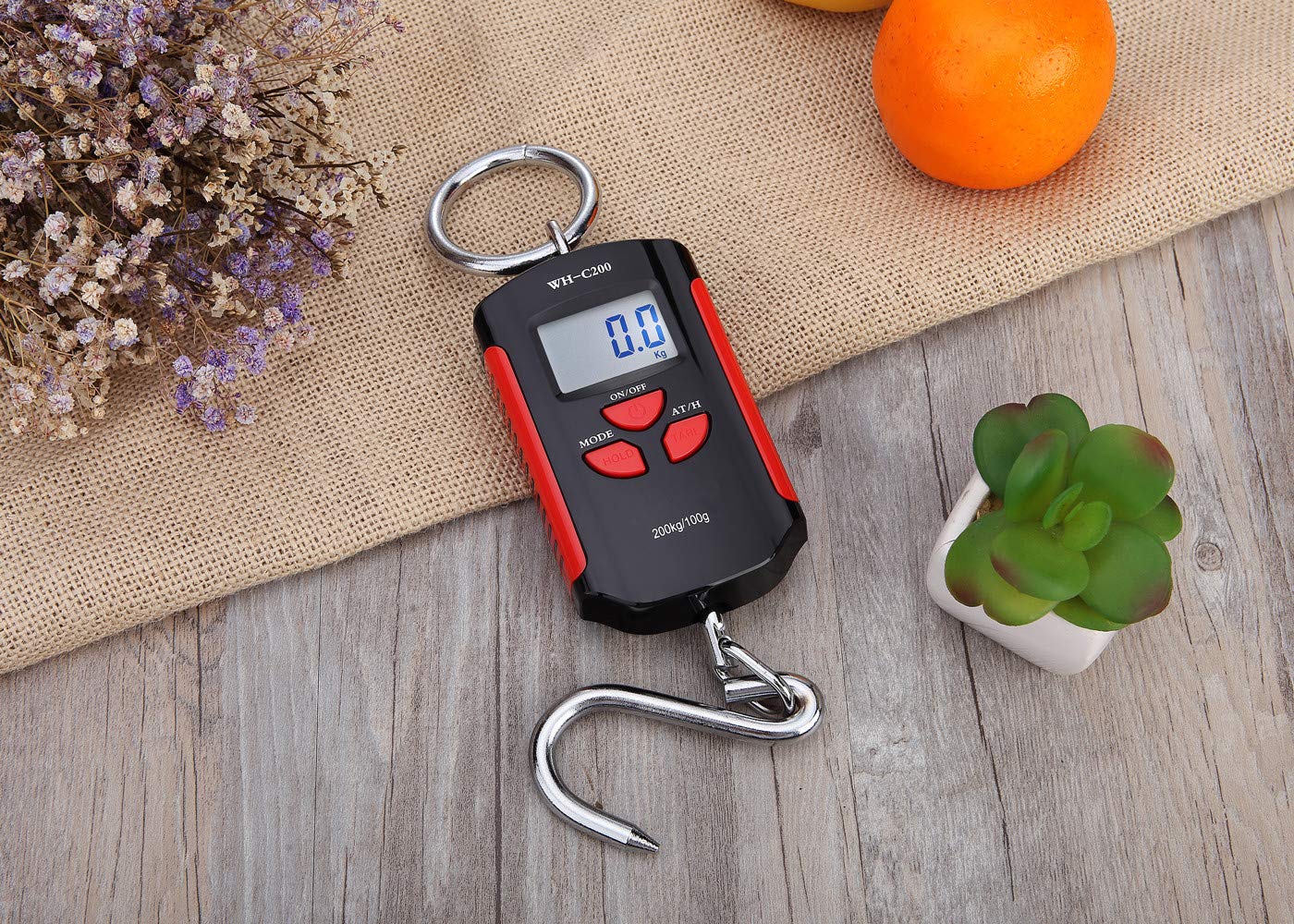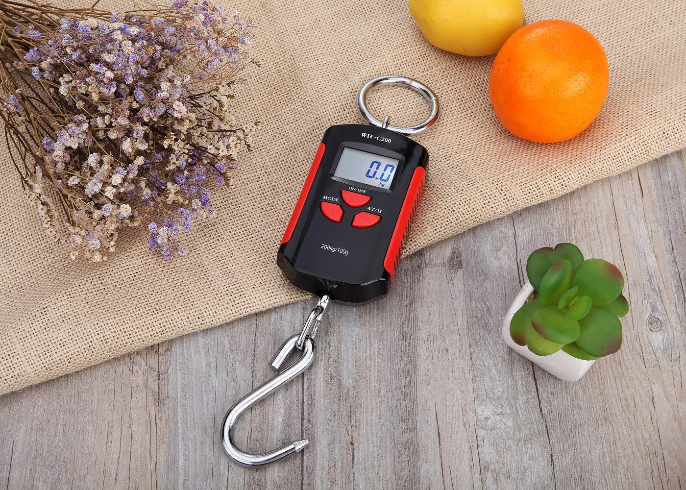 Klau Portable Mini Crane Scale 200 kg / 400 lb Heavy Duty Digital Scales LCD Display with Backlight for Home Farm Market Fishing Hunting Black and Red