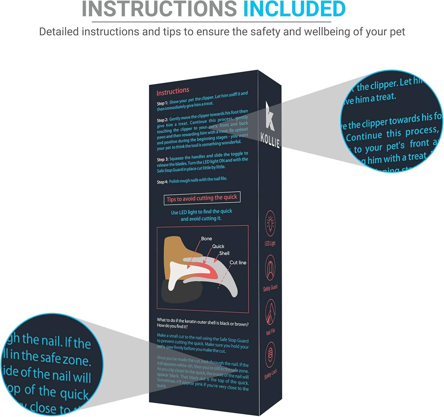 Kollie Dog Nail Clippers with Light LED, Cat Nail Clippers, Dog Nail Trimmer, Coupe Griffe Chien Avec Lumiere, Coupe Griffe Chat, Razor Sharp Stainless Steel Blades with Safety Guard