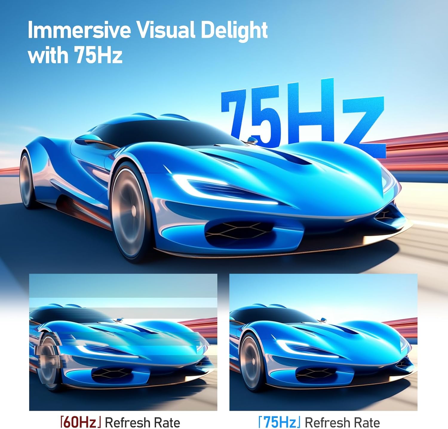 - Multiple Ports: Both HDMI and VGA ports offer a refresh rate of up to 75HZ to deliver sharper action game sequences and graphics clarity for graphic design projects