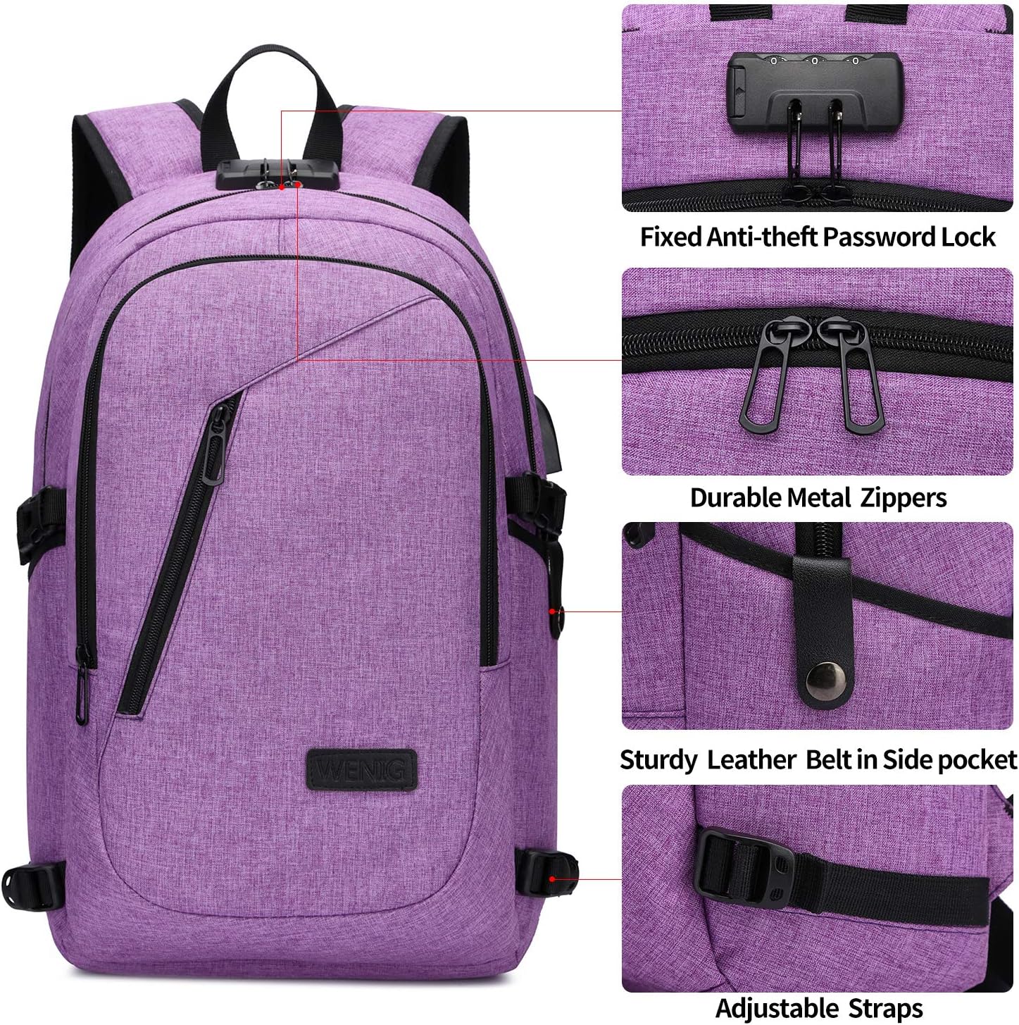 - ✈ CONVENIENT USB PORT&HEADPHONE JACK DESIGN - The usb charging backpack with built in USB charger outside and built in charging cable inside,this usb backpack offers you a more convenient way to charge your phone while walking. Please noted that this backpack doesn't include the power bank itself, usb charging port only offers an easy access to charge.A hole for headphone outside gives easy access to Earphone usage.You can listen to your favorite music on the go hands-free.