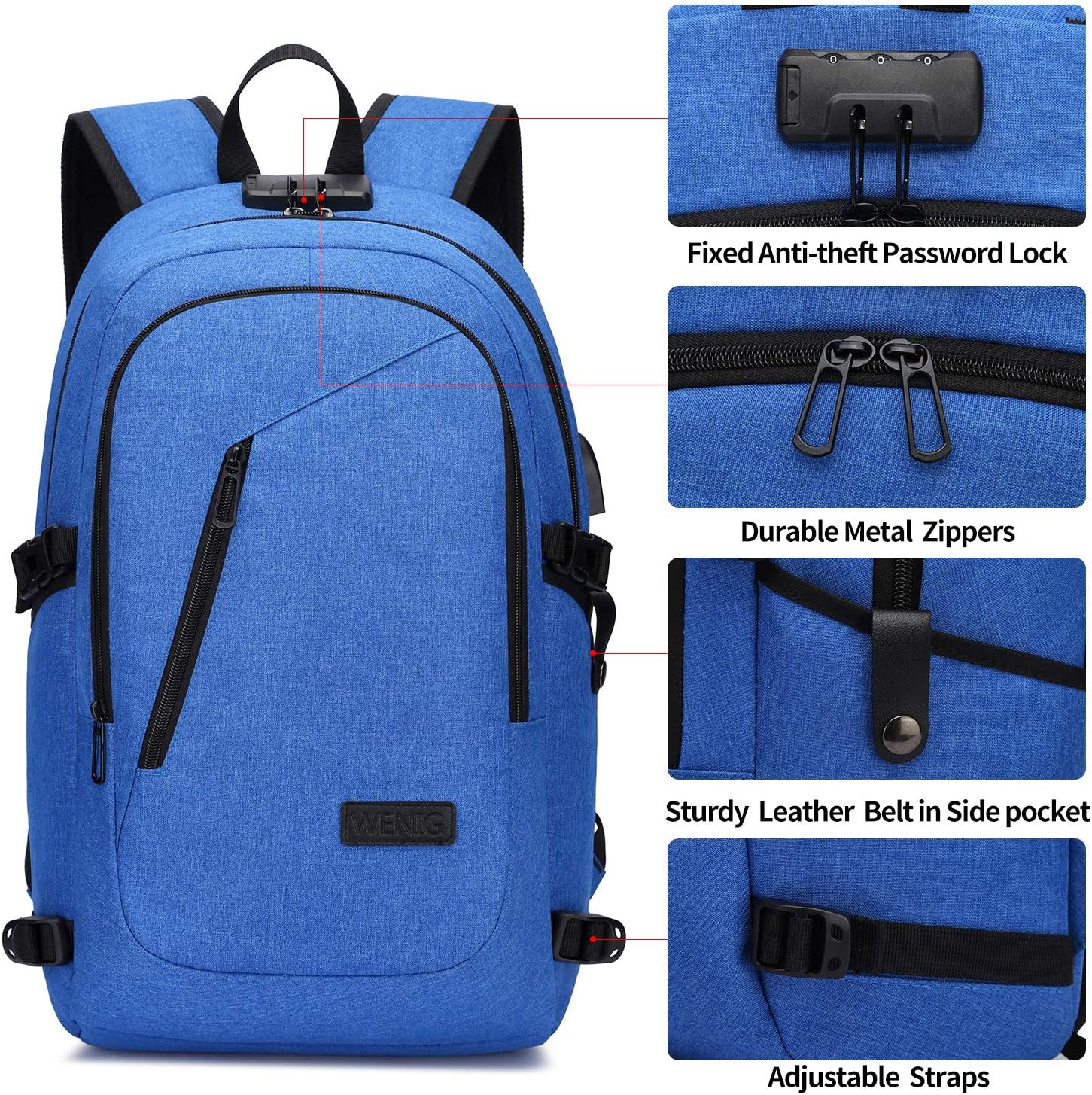 - ✈ SAFETY & PRACTICAL - This antitheft business travel computer bag With Fixed Password Lock and Durable Metal Zippers ,hidden anti-theft pocket on the back ,it is safe guaranteed for protecting your valuable items inside. No need to worry theft easily opening your backpack when you are travelling or lining up.A LUGGAGE STRAP allows backpack fit on luggage/suitcase, slide over the luggage upright handle tube for easier carrying.