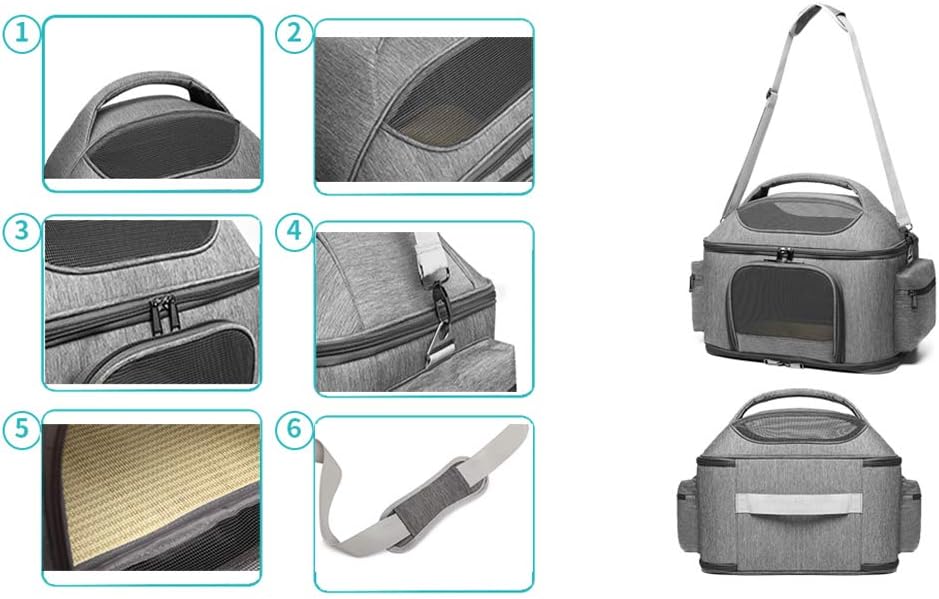 • Padded portable durable handle strap is easy to carry with soft cushion, entire pet carrier is able to fold to flat for space saving storage. Great carrier for traveling and vet visit.