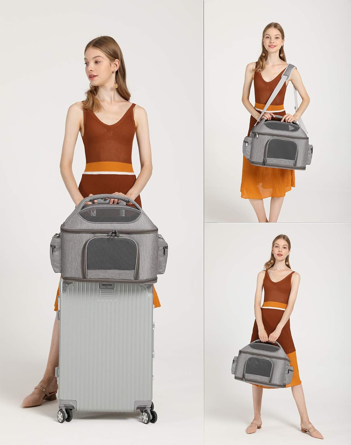 Large Pet Carrier for Cat and Small Dog, Fits 20 lbs Fat Cat, Soft-Sided Pet Travel Carrier, Cat BedPL17-B0829WSLCF